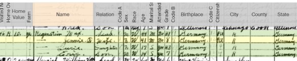 I don’t know what drew them to Chicago, but I did notice that one of the witnesses on Malchen’s naturalization papers was a man named Benjamin “Nandelstein.” Perhaps that was really Mandelstein, as the signature appears to be, and this was a relative of her sister Caroline’s deceased husband Albert Mandelstein.