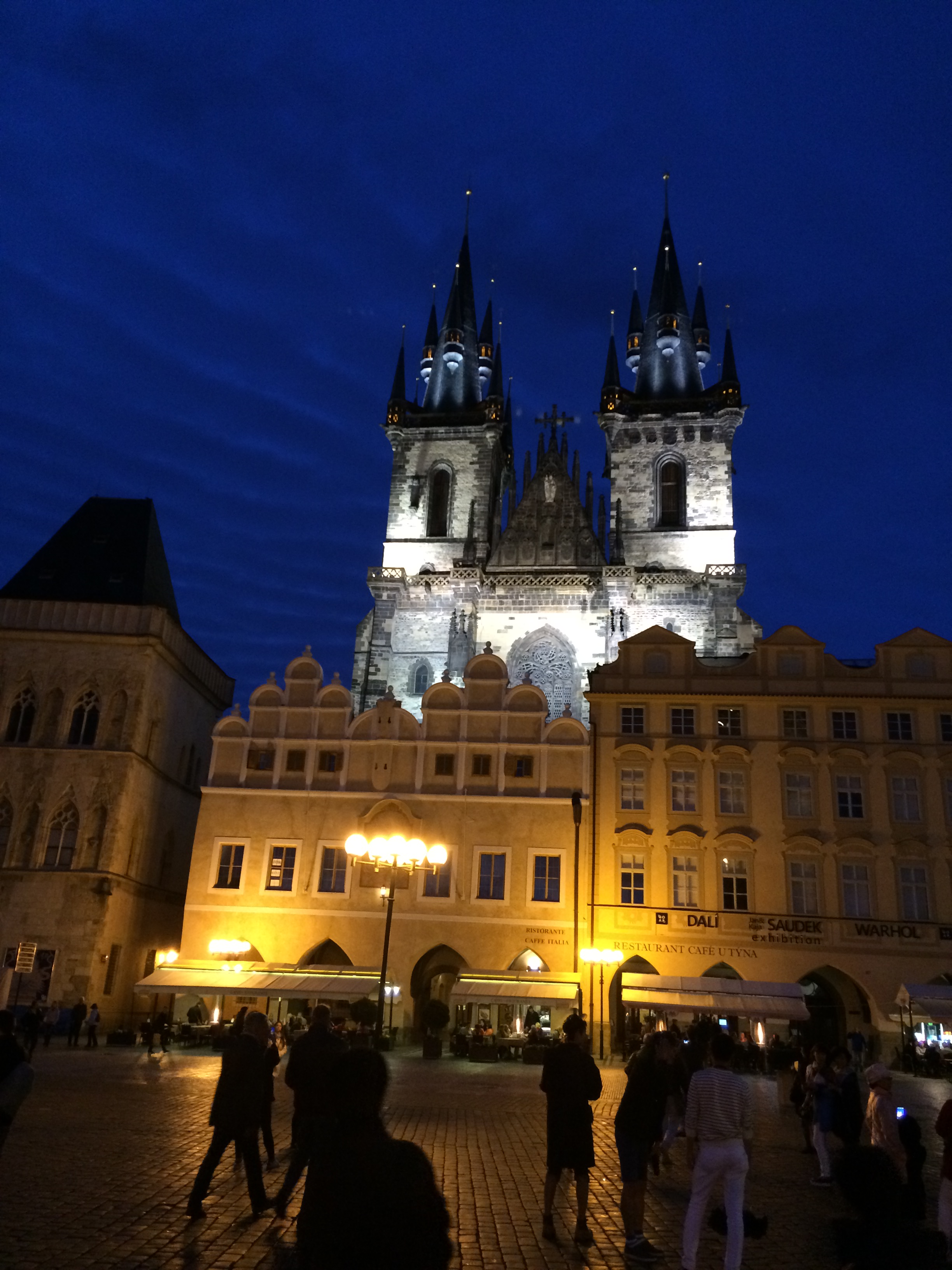 Of course, like Hansel and Gretel, we got lost once we had no tourist breadcrumbs to follow on the way back, but eventually we somehow ended up at the Old Town Square where the lights on the Tyn Church and on the Clock Tower added to my sense that we were living in a place of fairy tales.  We then easily found our way back to the Marriott.