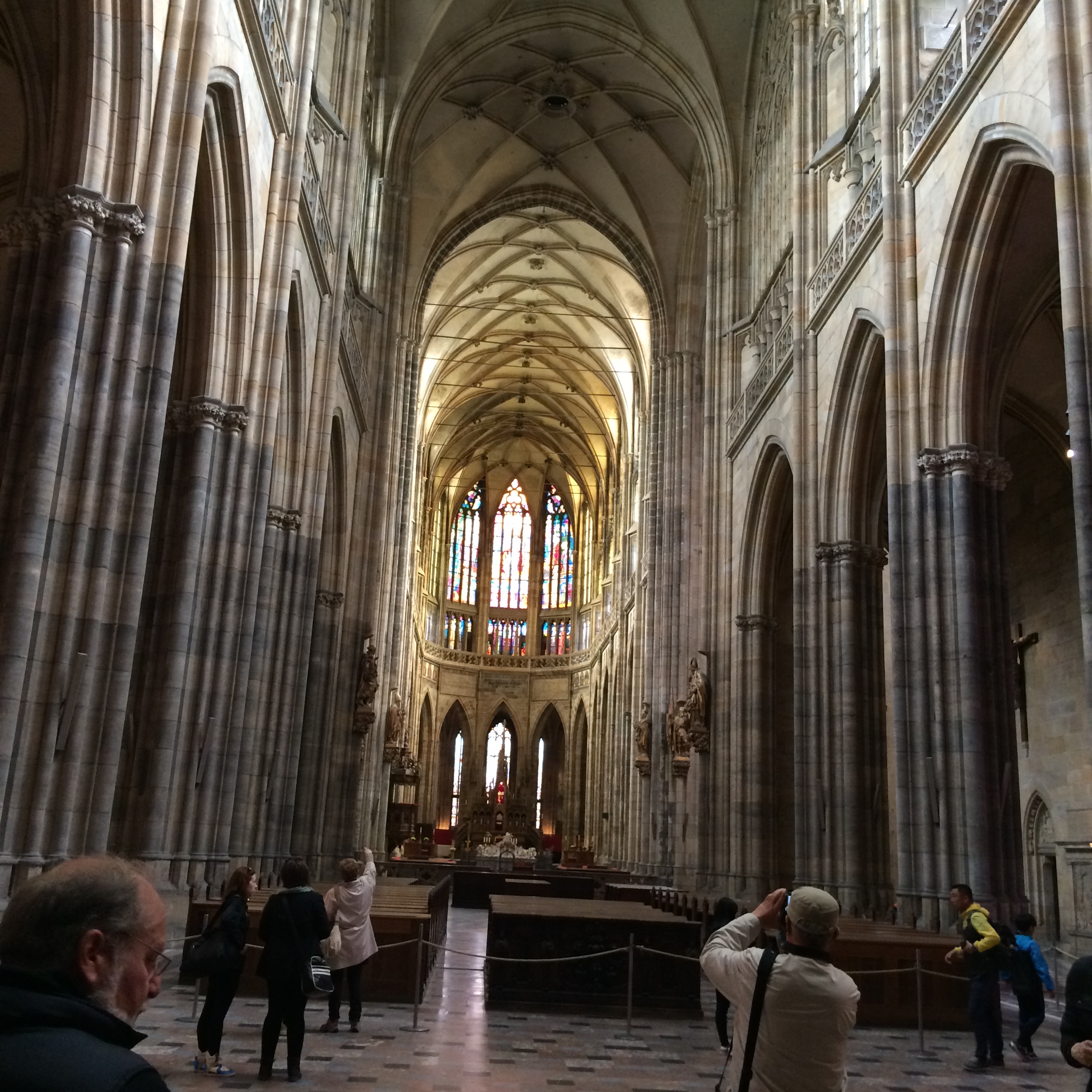 The next morning we met up again with Andrea and took the tram across the river to the Castle District, where along with numerous large touring groups, we entered the Castle area and then beat the crowd to the St. Vitus Cathedral, a huge awe-inspiring Gothic structure that was first built in medieval times and then expanded in the early 20th century, although done so seamlessly that you would never know.