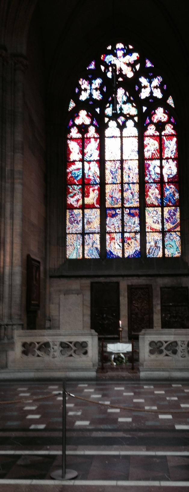 The only clue that part of the building was built in the 20th century was the stained glass window by Alfons Mucha that seemed far too contemporary for a Gothic cathedral. We had never heard of Mucha before, but would later that day visit the Mucha Museum, a small museum dedicated to the life and work of this Czech artist. Mucha lived from 1860-1939 and may be best known for his posters of Sarah Bernhardt, but it was his posters promoting Czech pride that moved me the most.