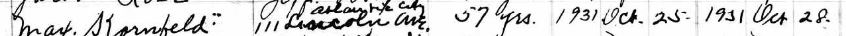 Finally, Max Kornfeld and his wife Emma had moved to Atlantic City by 1923, according to the directory for that year for that city.  They were still there in 1926, and Max was working again as an insurance agent. I could not find Max and Emma on the 1930 census.  (What is it with this family and the 1930 census? How did they elude the census takers?), but they were still living in Atlantic City when Max died on October 25, 1931.  Max was 57 years old. He was buried at Rodeph Shalom cemetery in Philadelphia.