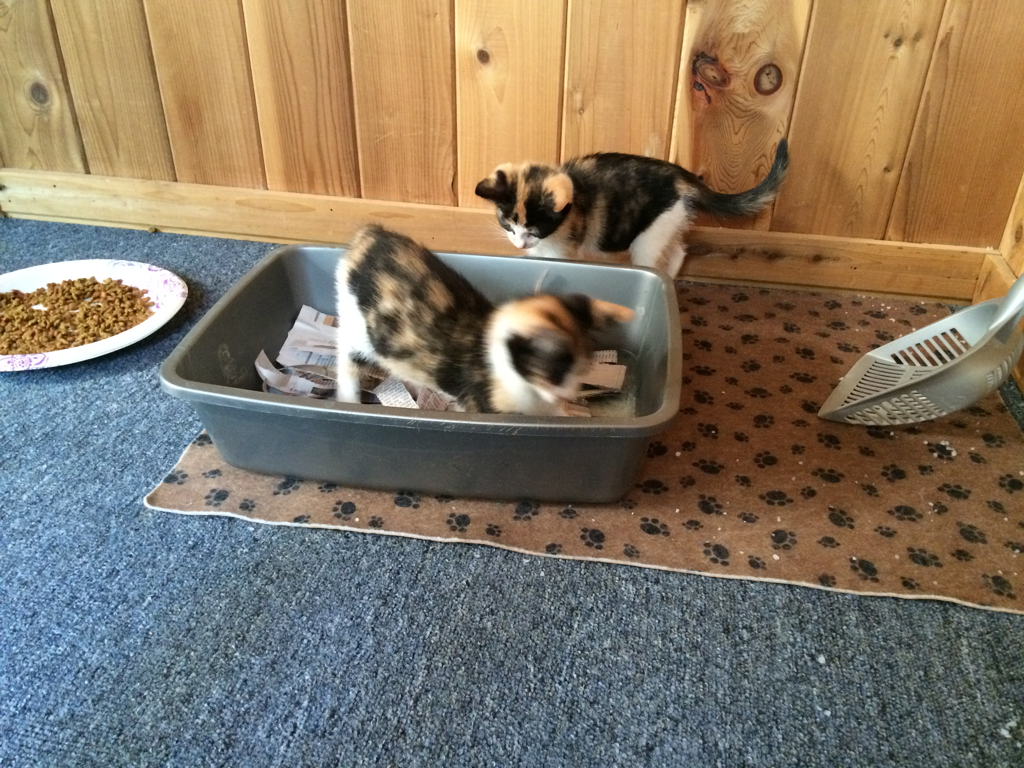 After they both tried to eat the crystal-type kitty litter, we had to use newspaper until we could get some traditional litter.