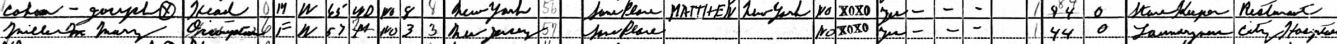 Bob has no memory of his grandfather living in New Jersey.  The man on this census record was living with a woman, Mary Miller, listed (I think) as “occupant,” working as a laundryman (?) in a hospital.  Although the enumerator wrote that Joseph was living in the same place in 1935, he also wrote that he was living in Matthen (??), New York, in 1935.  Maybe that’s Manhattan?  The same page has lots of other strange entries.  I think perhaps this enumerator was not very careful.