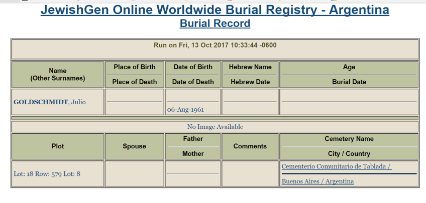 Julius Goldschmidt burial record JOWBR
