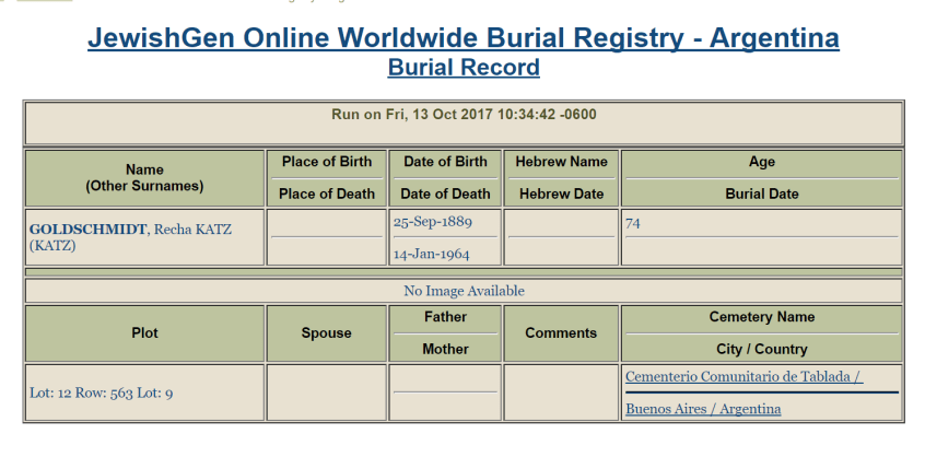 Recha Katz Goldschmidt burial record