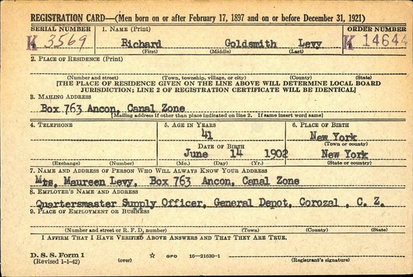 Richard Levy ww2 draft card