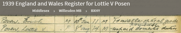 Lotte Loewenthal and Erich Posen, The National Archives; Kew, London, England; 1939 Register; Reference: RG 101/980H, Enumeration District: BXHY, Ancestry.com. 1939 England and Wales Register