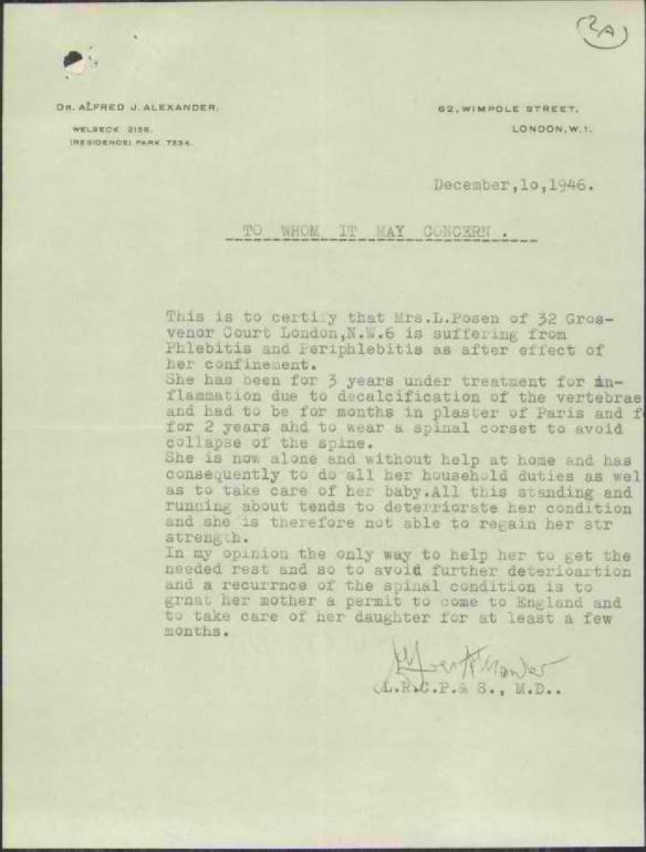 2. It was interesting for me to see the citizen paper work for Palestine for the family. I have never seen one. This posting was so bitter sweet to read. The letter written by the Dr. was really interesting, to think that something as simple as that held such weight. Do you know how long her mother stayed with her in England before returning to England?