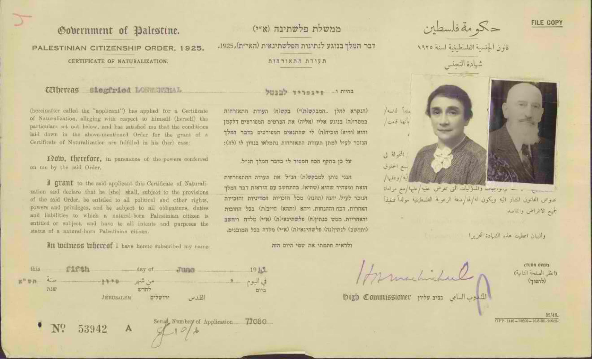 Naturalization certificate of Siegfried and Henriette (Feuchtwanger) Loewenthal, https://www.archives.gov.il/en/archives/#/Archive/0b07170680034dc1/File/0b07170680b9fac4