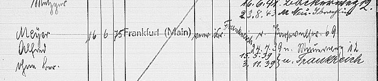 2 Registration of Foreigners and German Persecutees by Public Institutions, Social Securities and Companies (1939 – 1947) / 2.1 Implementation of Allied Forces’ Orders on Listing all Foreigners and German Persecutees, and Related Documents / 2.1.1 American Zone of Occupation in Germany / 2.1.1.2 Lists of all persons of United Nations and other foreigners, German Jews and stateless persons; American Zone; Bavaria, Wurttemberg-Baden, Bremen (2) / Excerpts from “Hausstandsbüchern” of the town of Frankfurt/Main