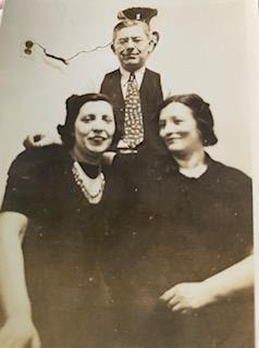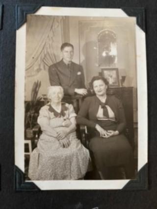 Alyce labeled this photograph, “Grandpa Joe. I think that could be Aunt Rose [the youngest child of Sarah Brod and Sam Goldfarb] on the left. Not sure who’s on the right.”