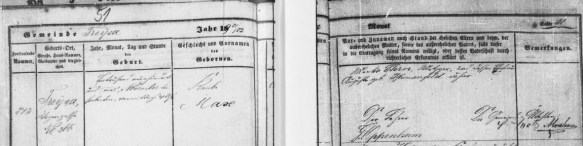 Unfortunately, I had no luck. I looked for records in the towns where Minna Hirsch was born (Sachsenhausen) and where Hannah Blyn was born (Niederurff)2 since marriages often took place in the brides’ hometowns. I was hampered to some extent by which records were available online for each of these towns.