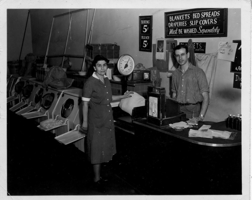 Elise Bloch Rothschild and her son Ernest in their laundromat. Courtesy of the family