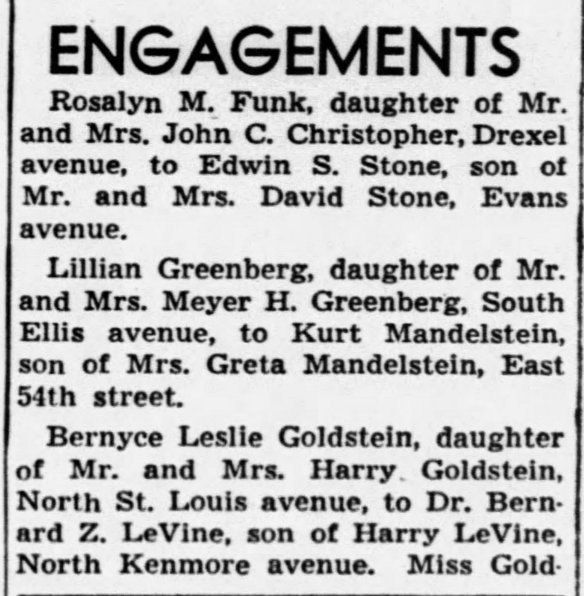 Kurt became engaged to Lillian Greenberg in May 1942.