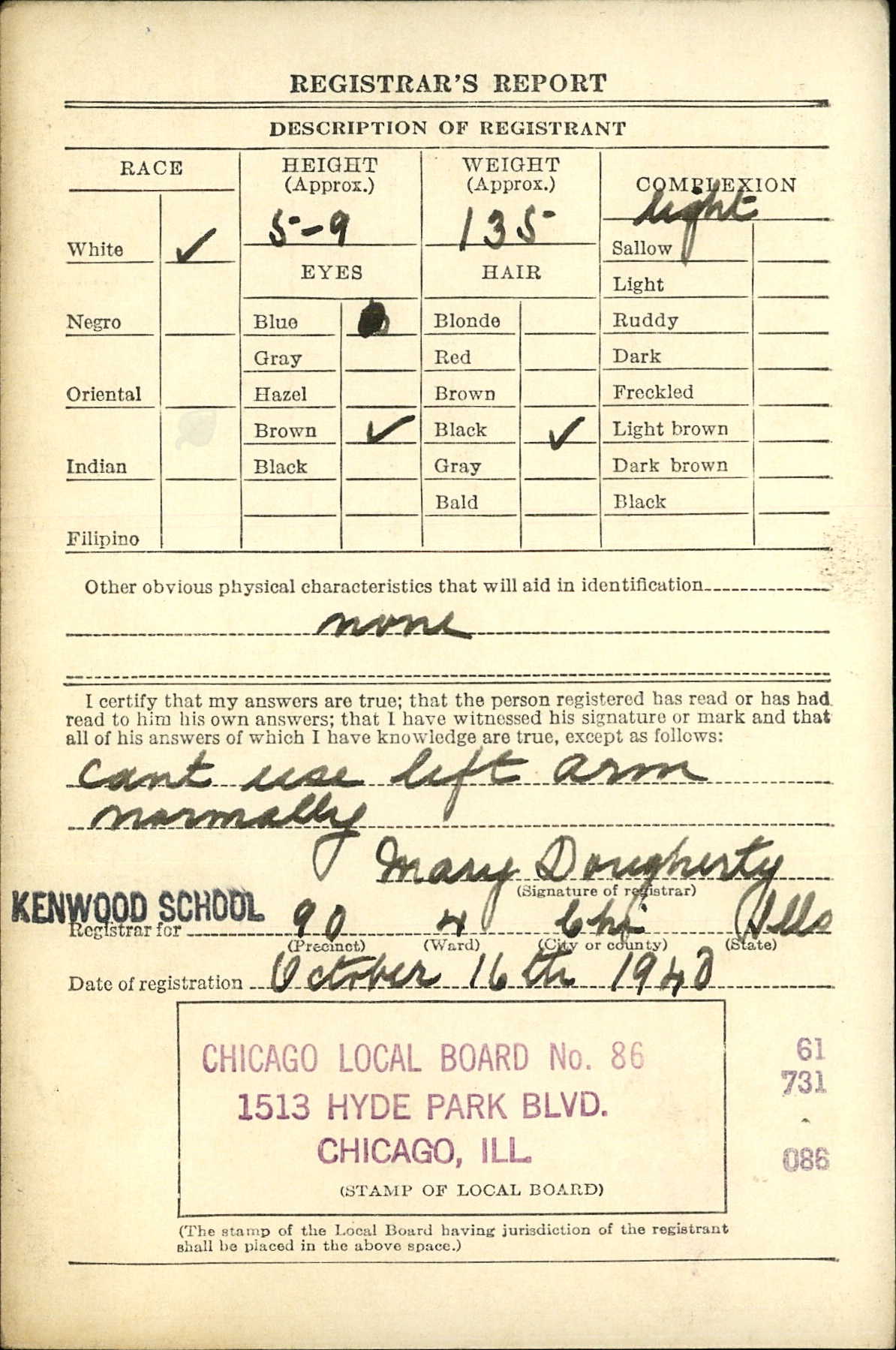 Residence Place Chicago, Cook, Illinois, USA, Registration Date 16 Oct 1940