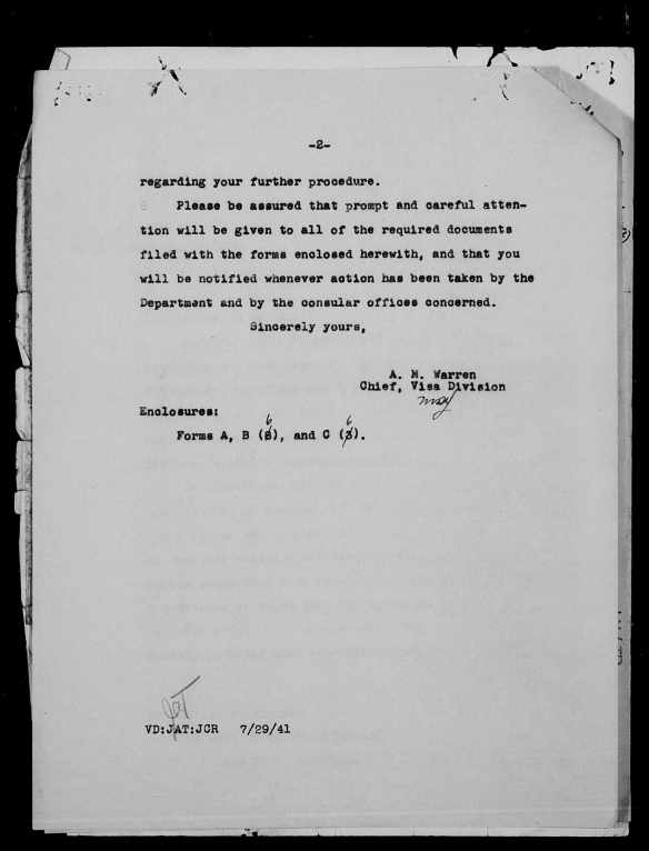 In any event, the State Department responded to Willie’s letter, agreeing to send the required forms for all the people listed in the letter except for those still in Germany.