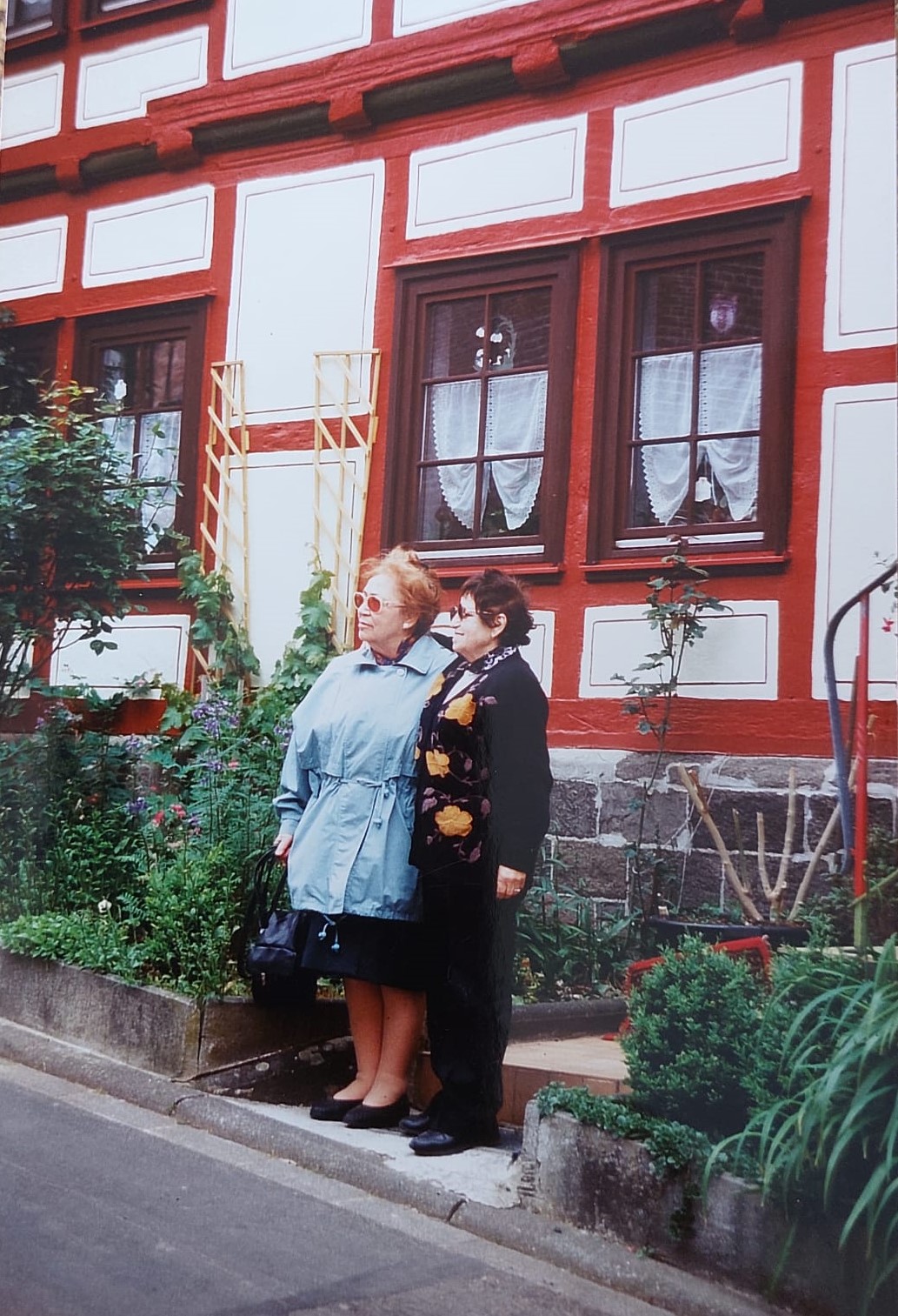 Finally, Meir shared with me some photographs taken when his mother Hana and aunt Adi visited Germany in 1998. Here are Adi and Hana in Hoof, the town where they were born, the town they’d left behind more than sixty years before.