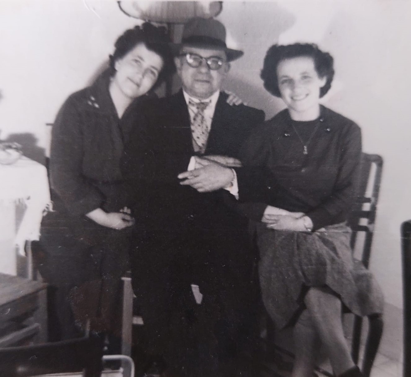 Berthold Rothschild with his daughters Adi (to his right) and Hana (to his left), 1956