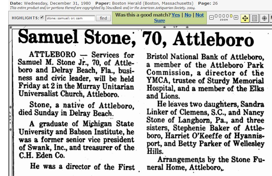 It is also interesting that traveling with MJ was his niece, Stephanie Stone of Attleboro, Massachusetts, my cousin’s Mike’s mother. Stephanie obviously knew Bossie, yet Mike had always believed that his great-uncle had never married.