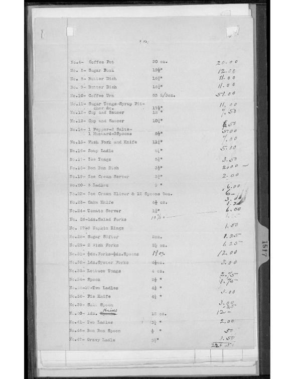 The total value of these properties came to $17,180.43, or approximately $617,000 in today’s dollars. Of course, many of these items, especially the jewelry, may have appreciated far beyond the value they had in 1905 and beyond what the inflation calculators consider.