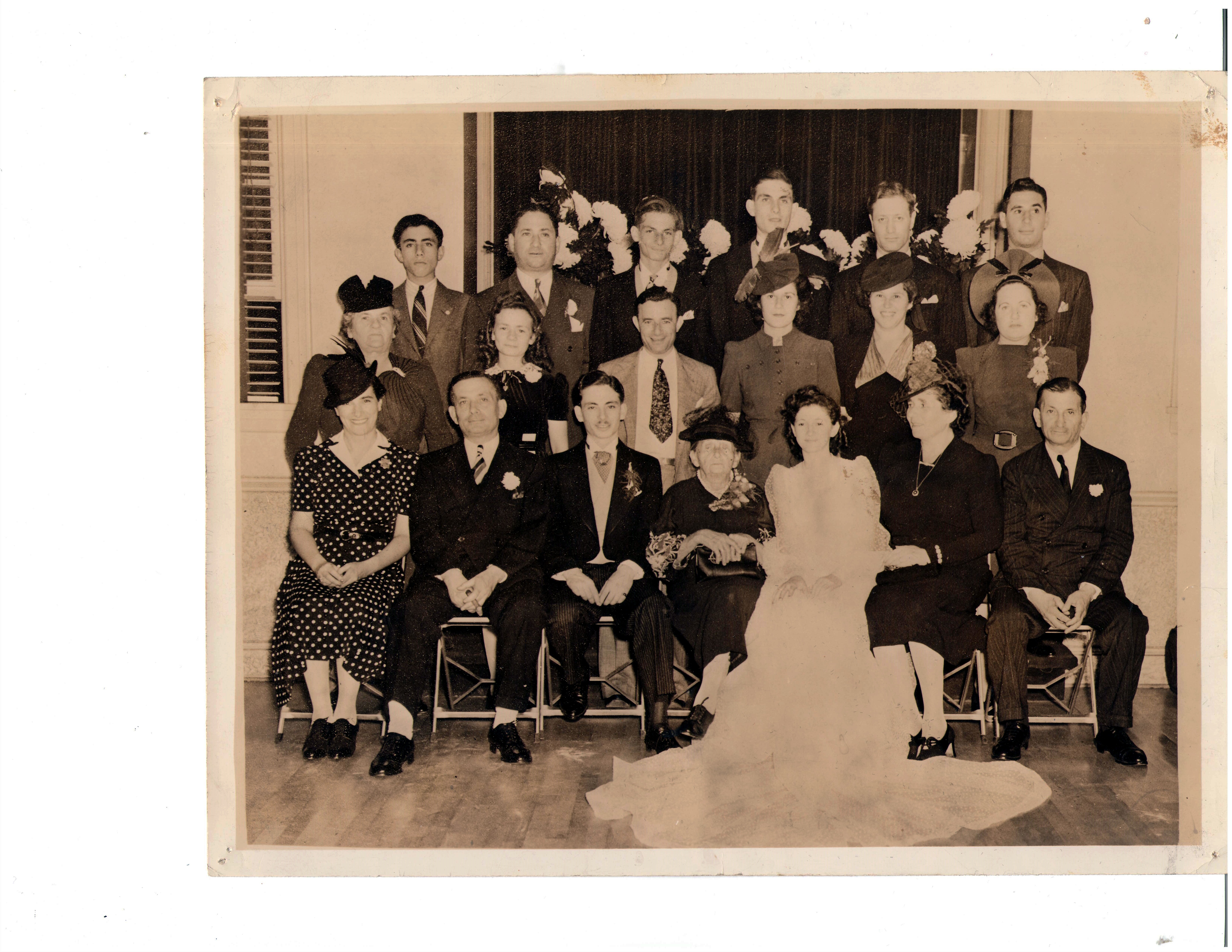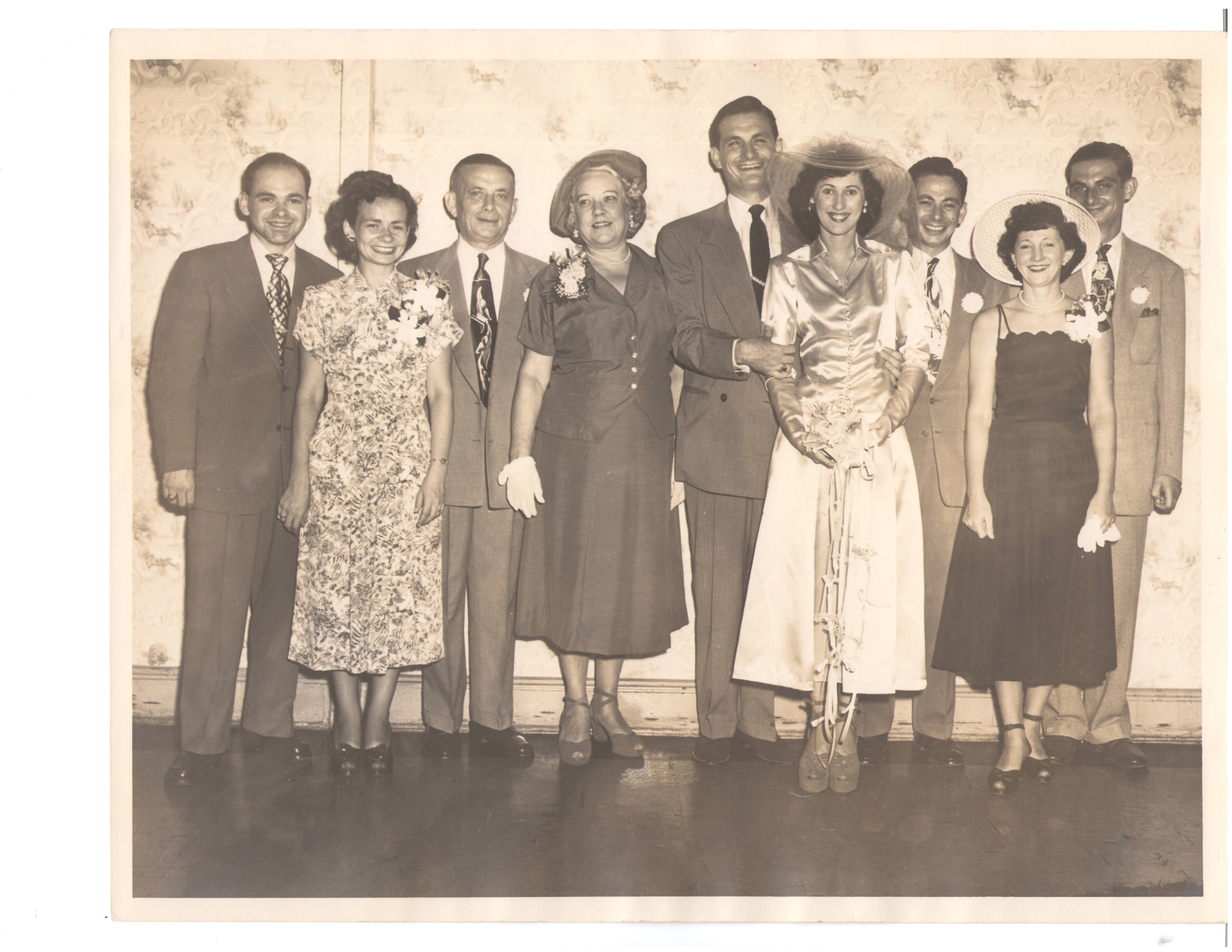 Nathan Letnick and Thelma Seamon were married after the war on November 10, 1946. Here is their wedding photograph with the extended family.