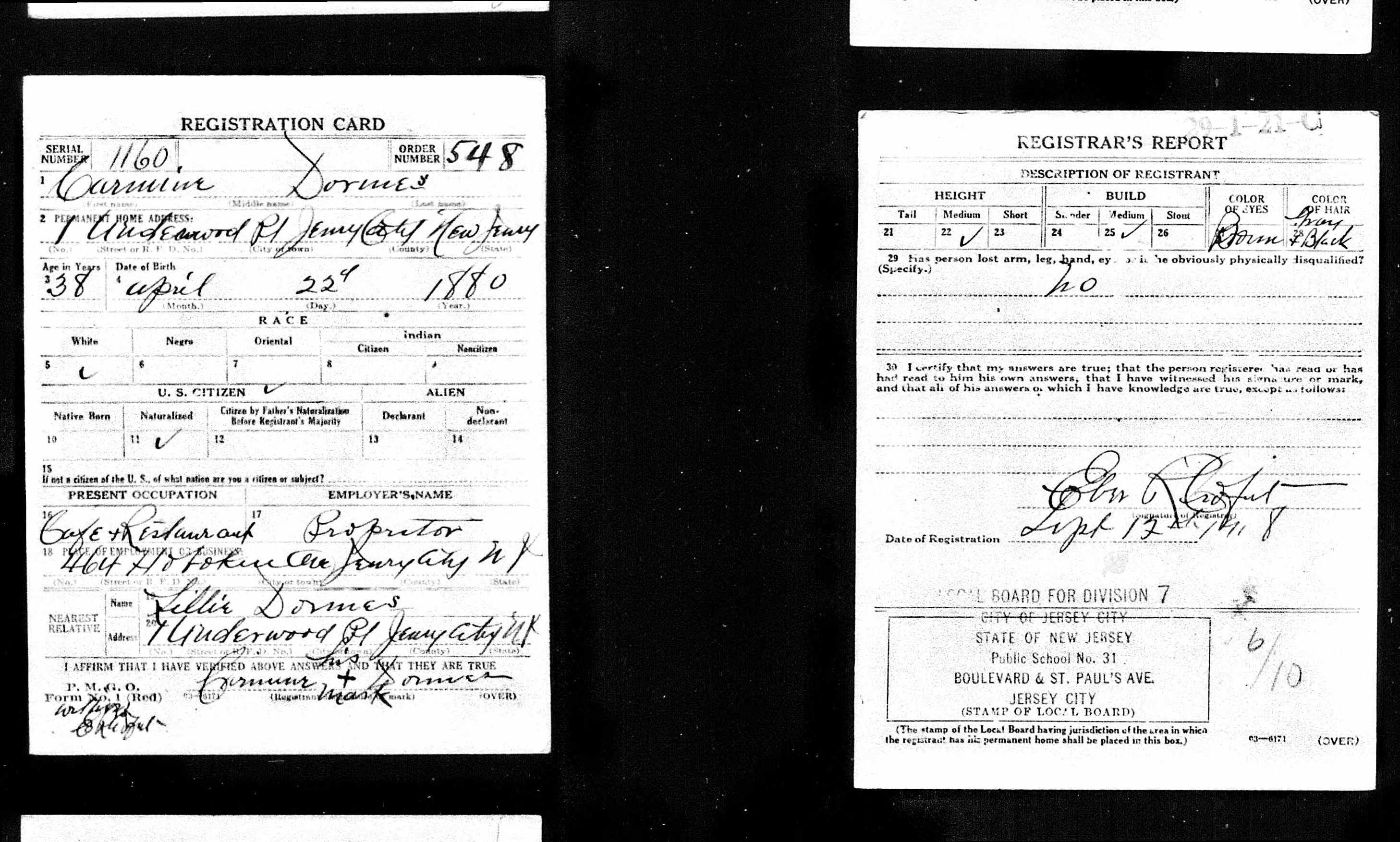 As for Ben, I found a World War II draft registration dated 1942 that indicates that he was employed by the Town Pump in Tullahoma, Tennessee, but was residing with Jerome in the Bronx. Ben moved to Florida sometime after 1952 and worked at a dog racing track now known as the Mardi Gras Casino. He died in July, 1971, and is buried at Long Island National Cemetery.