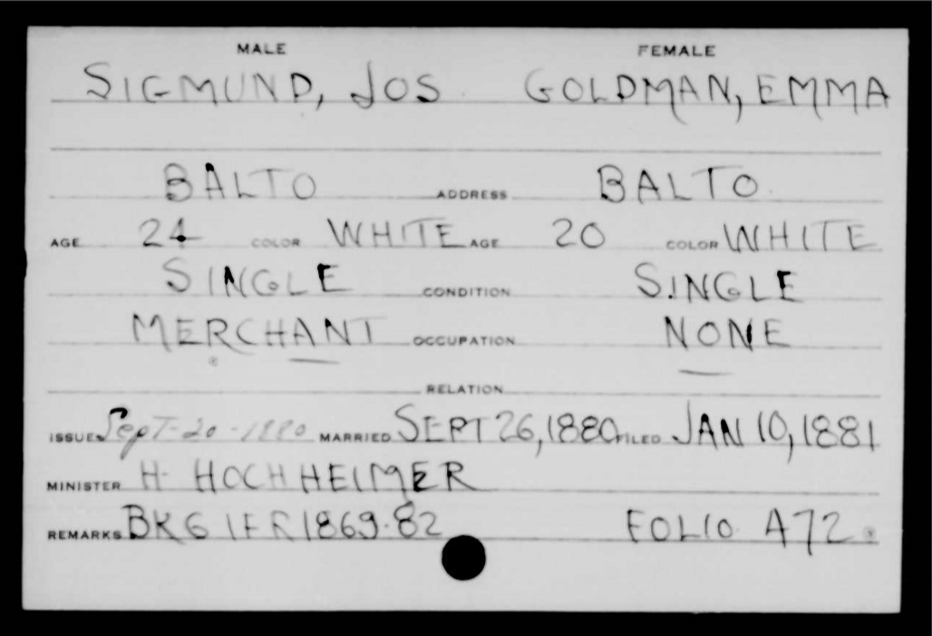 But what made this wedding article particularly exciting to me were the names on the guest list because included on that list were my great-grandparents—Mr. and Mrs. I. Schoenthal—that is, Isidore Schoenthal and Hilda Katzenstein. Why would they have been attending this wedding? Well, follow the bouncing ball.