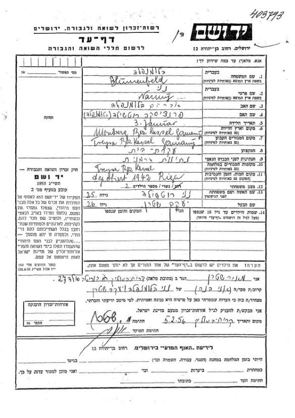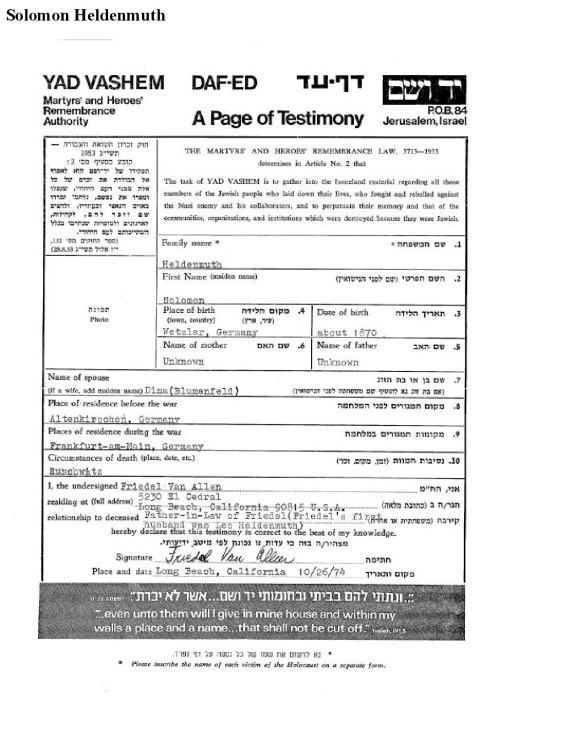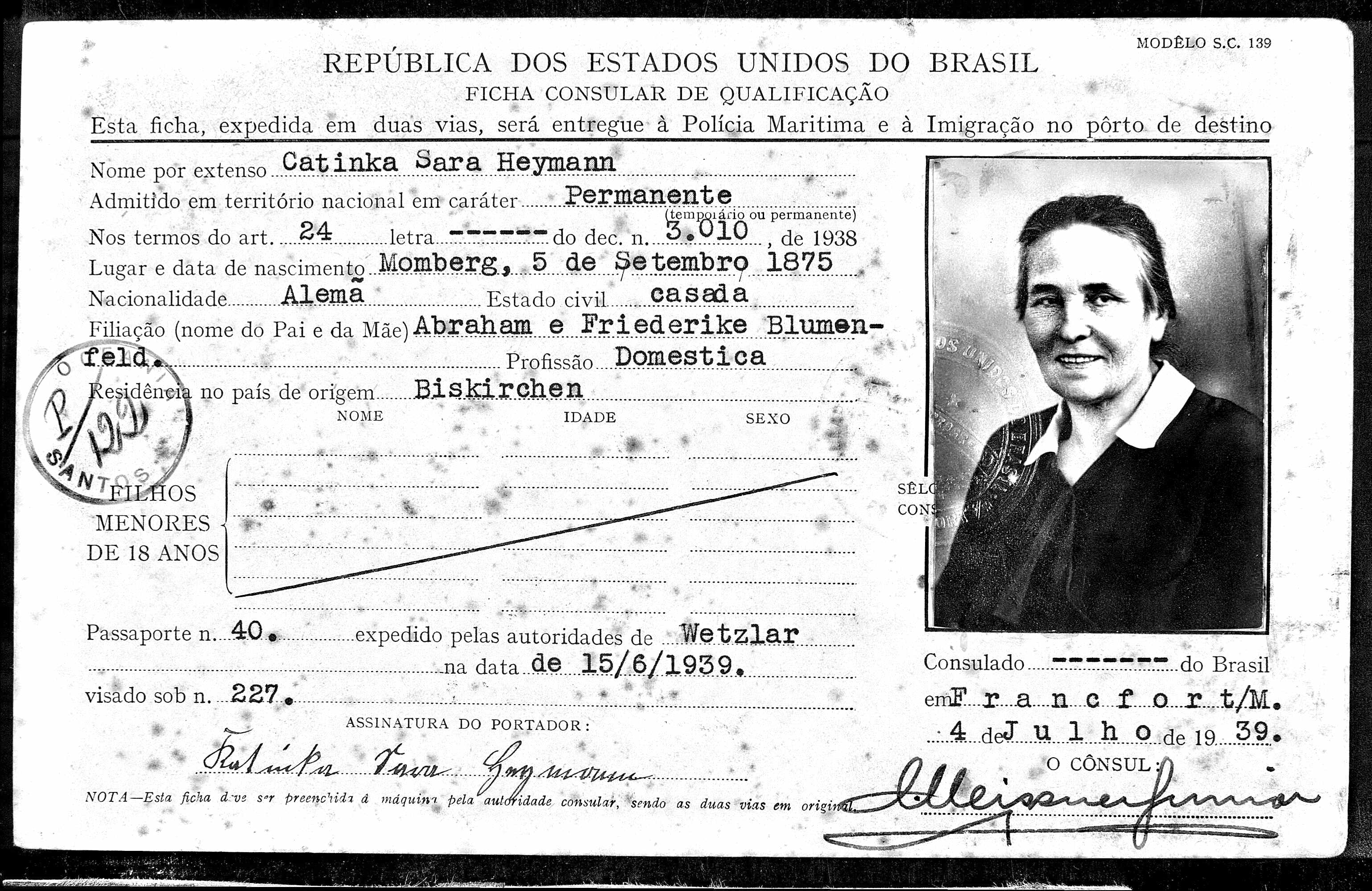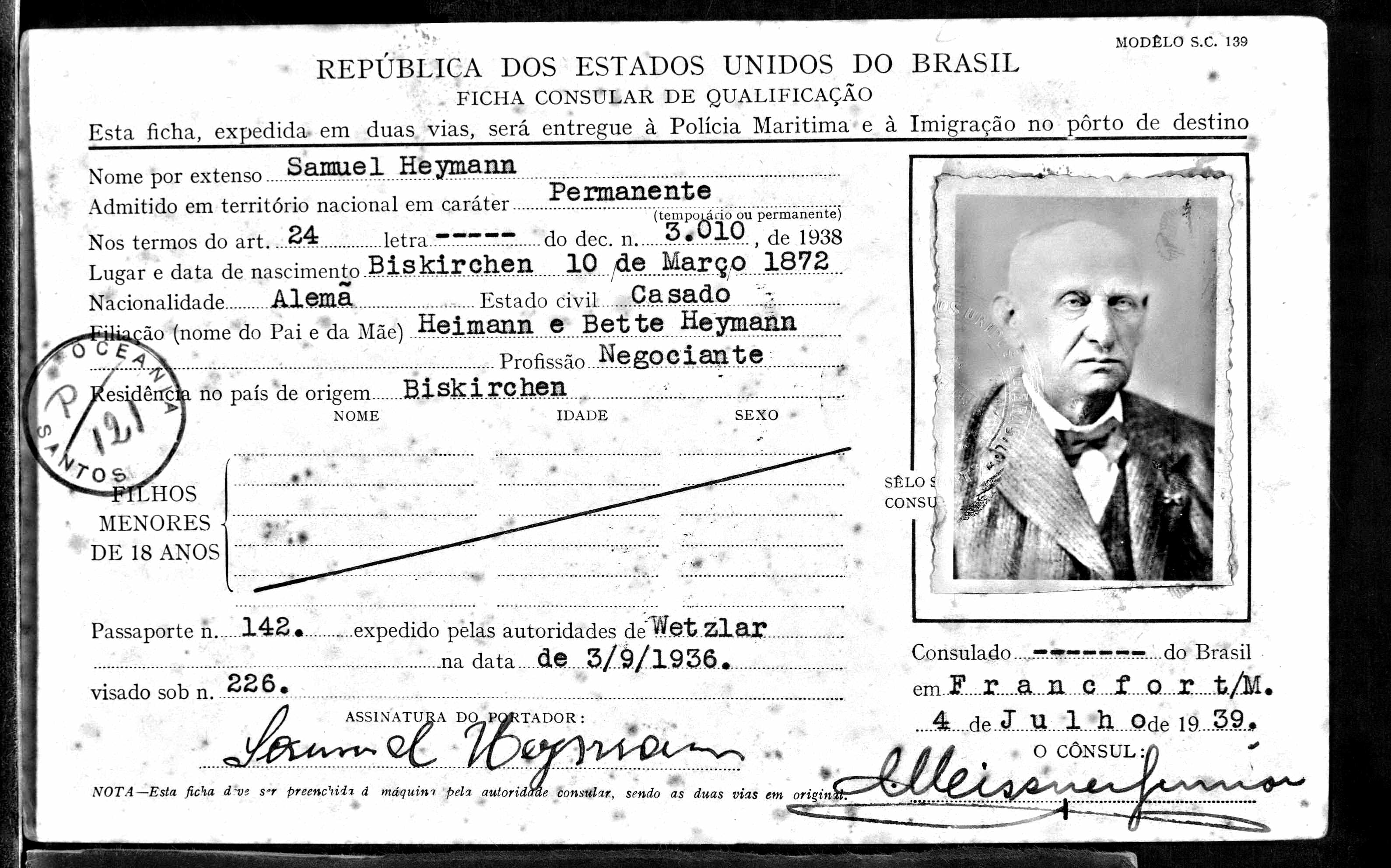 Meanwhile, back in Germany, conditions worsened for Hilde’s parents and her sister Gretel and her family. After Kristallnacht in November, 1938, Salomon Blumenfeld and his son-in-law David Katz were arrested and sent to Buchenwald.4 After they were released, Hilde used her connections and borrowed money to bring her parents to Brazil. Hilde stated in her Shoah Foundation interview that when her parents arrived in Brazil, her father looked emaciated from his time in Buchenwald, despite the fact that his son-in-law had given Salomon half of his own rations so that Salomon would survive. 5