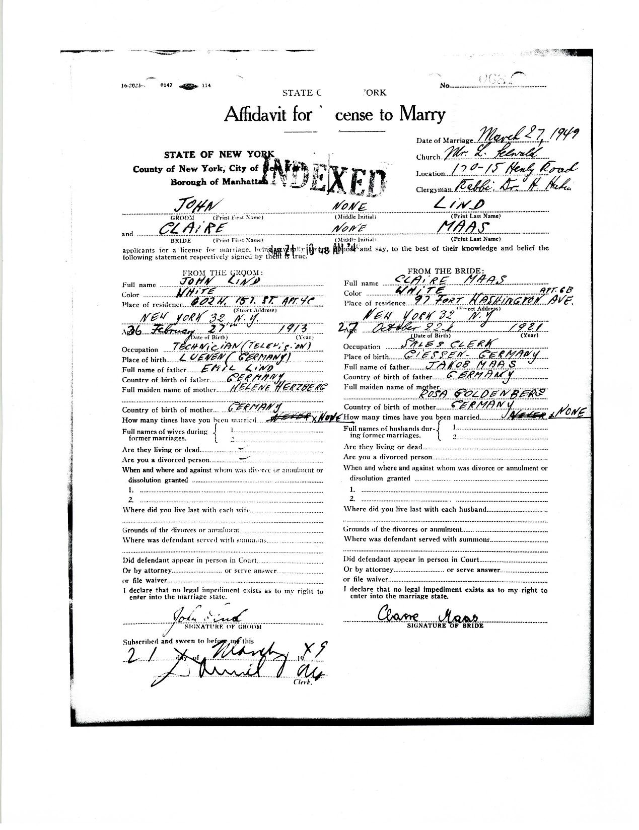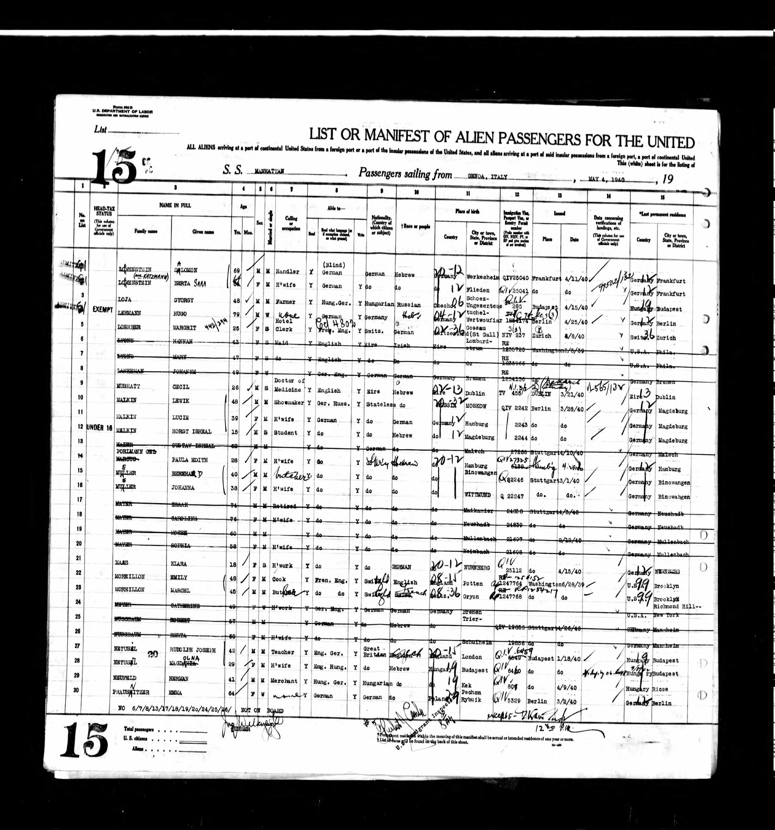 The only descendants of Rebekka or Regina who did not go to South Africa were Rebekka’s son Berthold and his wife Ida and their children, Senta and Ludwig. Instead, they went to the United States. Their daughter Senta arrived first on October 8, 1938, and Berthold, Ida, Ludwig, and Ida’s mother Bertha Blumenstiel arrived on November 25, 1938; they were all going to a cousin, Leo Katzmann in the Bronx: