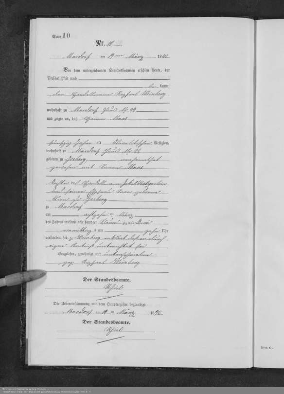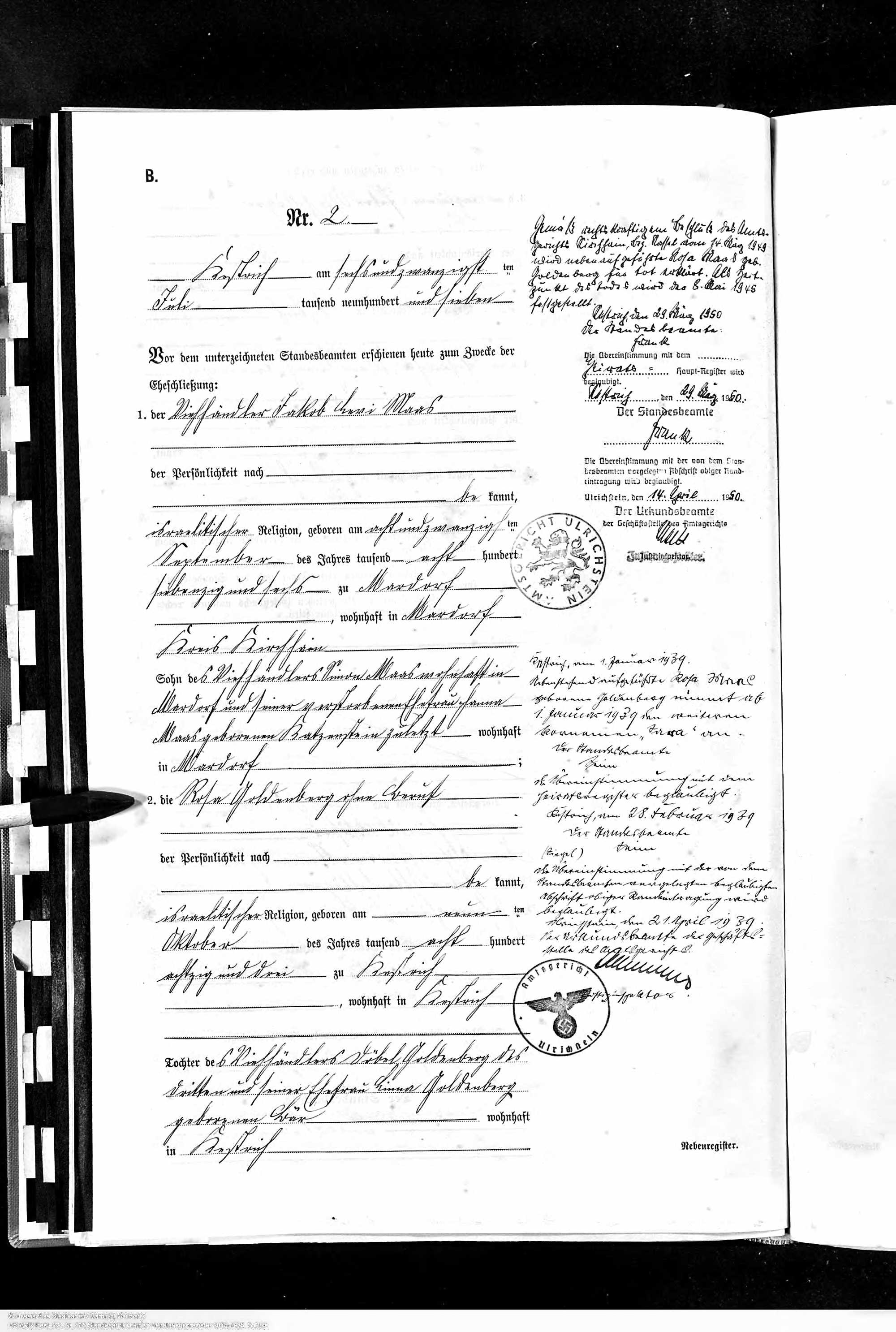 Hessisches Hauptstaatsarchiv; Wiesbaden, Deutschland; Collection: Personenstandsregister Heiratsregister; Signatur: 920; Laufende Nummer: 3872