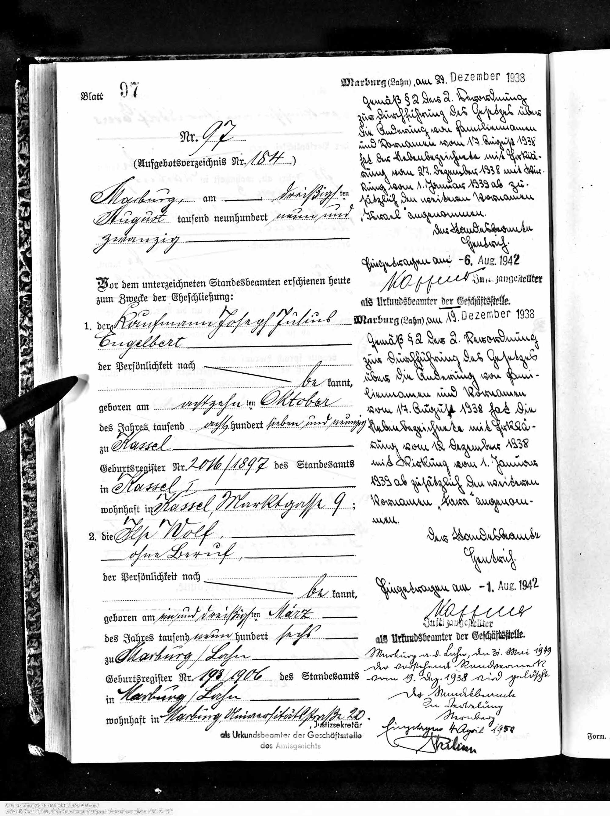 HStAMR Best. 920 Nr. 2610 Standesamt Gudensberg Heiratsnebenregister 1879, S. 10