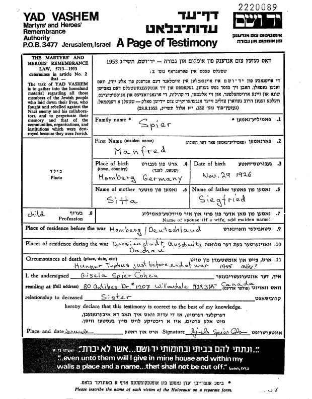 Thekla had refused to leave Germany, and her daughter Cecilie would not leave her mother behind. Robin wrote that “[Cecilie] was very smart and saw the writing on the wall but her mother would not leave. I remember my family talking about them having tickets on a boat somewhere. But the boat was cancelled.”1 Fortunately, Cecilie’s children were safely in England.