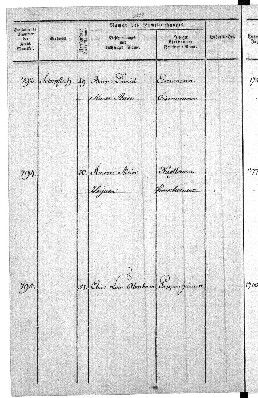 My 4x-great-grandparents, Amson Nussbaum and Voegele Welsch, died in 1836 and 1842, respectively, and I thought they were likely the last family members to have died in Schopfloch. Six of their eight children immigrated to the United States before 1860; there were two additional daughters for whom I had birth information, but no information as to whether they had married or had children or where or when they had died. I am still searching for the documents Angelika Brosig used to document this Nussbaum family. But, as far as I knew, there was no one left in Schopfloch from my Nussbaum family after 1860. Would I find anything relating to my ancestors in this town?