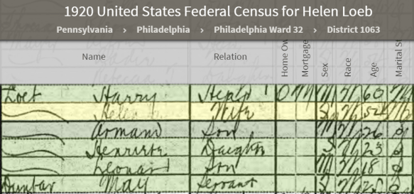 Then she considered other women in the extended family who might have been in the photograph. She narrowed the possibilities to Sarah Jane Tadley Craig, Bessie Craig Cohen’s mother, or Edna Mayer Cohen’s mother, Ella Stern Mayer. Ella was born in about 1860 (sources conflict), making her about 63 in 1923; Sarah was born in 1869, so would have been 54 in 1923.