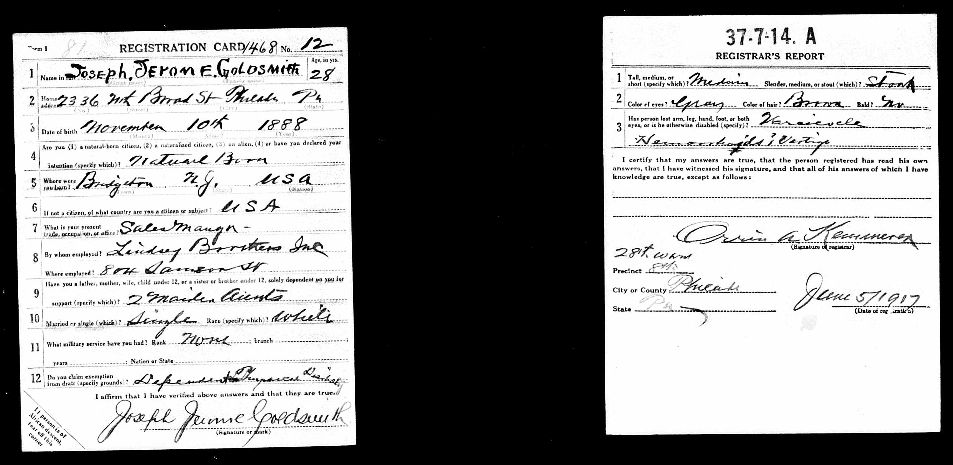 - James Craig, death certificate, Certificate Number: 140783, Pennsylvania Historic and Museum Commission; Harrisburg, Pennsylvania; Pennsylvania (State). Death certificates, 1906–1967; Certificate Number Range: 140251-143500, Ancestry.com. Pennsylvania, Death Certificates, 1906-1967 ↩