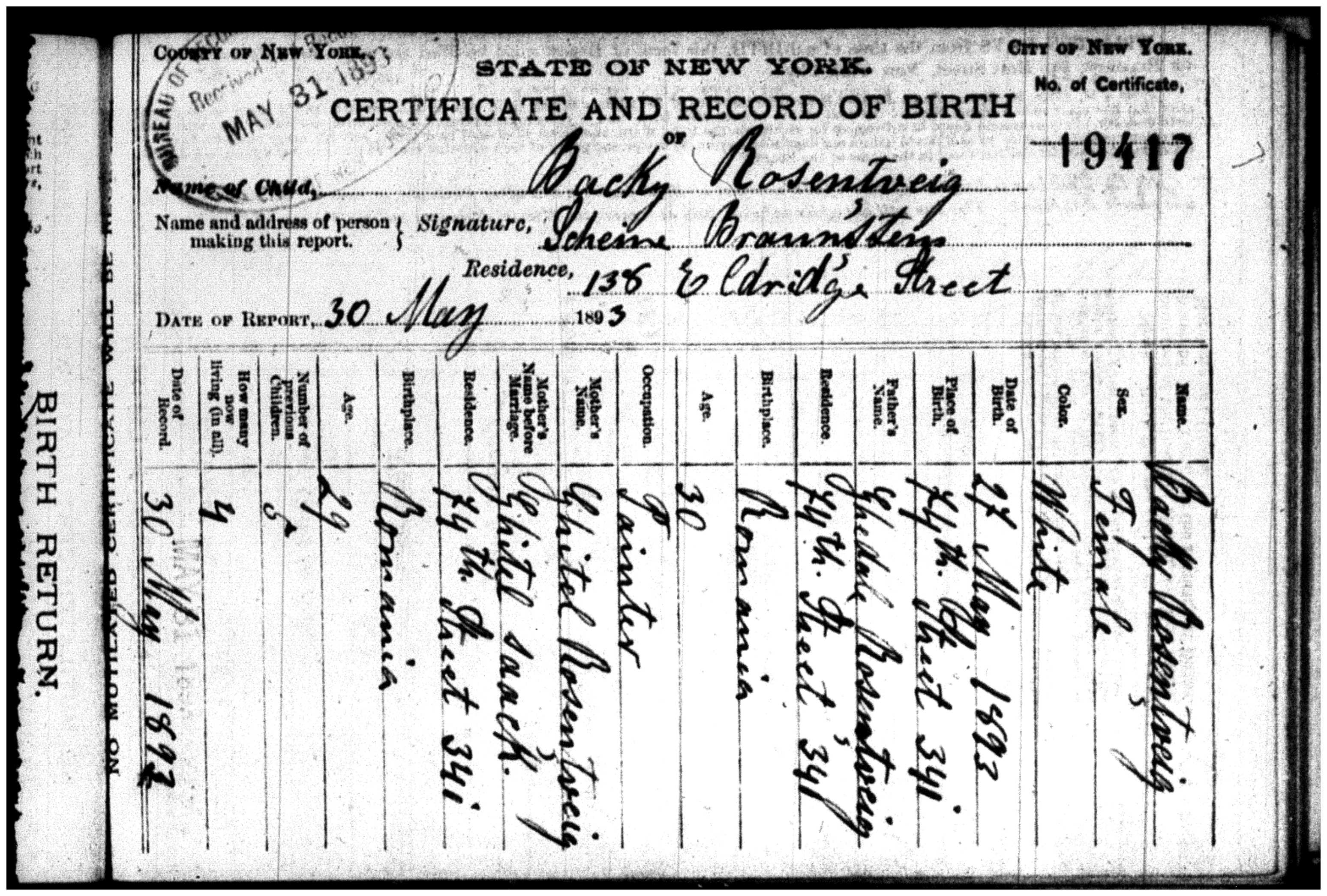 Felix and Margaret had two daughters in the 1880s: Rachel (1881) and Yetta (1884). I assume that Rachel was named for Margaret’s mother and that Yetta was named for Felix’s mother, my great-great-grandmother Henriette Hamberg Schoenthal, who had died in 1882.