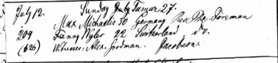 Fanny Wyler marriage to Max Michaelis July 12 1874