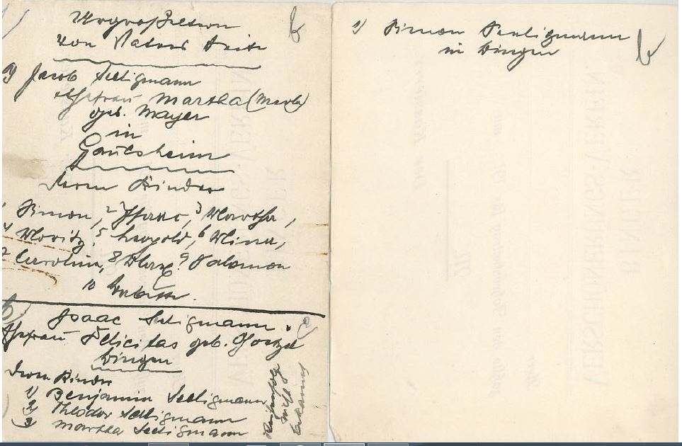 As I mentioned in my last post, my cousin Wolfgang sent me several new documents relating to our mutual Seligmann ancestors. Wolfgang and his mother received these from Beate Goetz, who had also sent me several important documents over a year ago. I continue to be amazed by how much information is available about my Seligmann forebears.