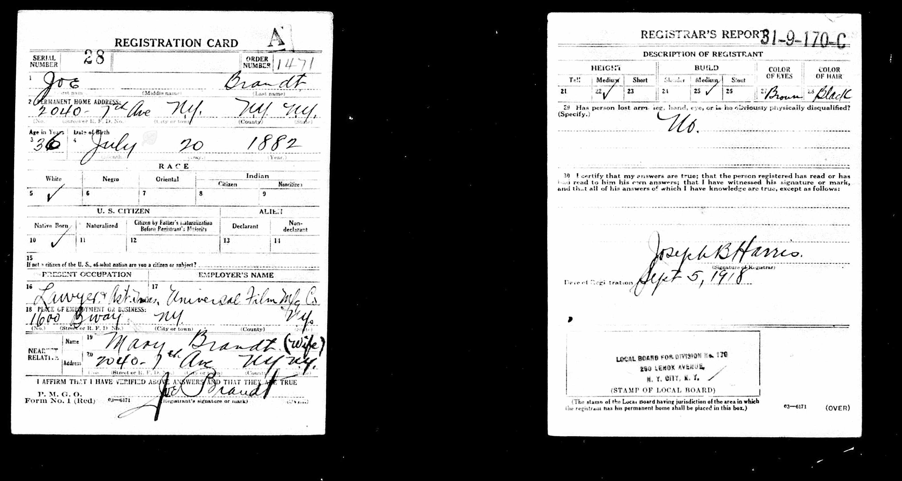 It was a challenge to learn much more about Lester, the younger of the two brothers. In 1940 he was still living in Kansas City, working as a photographer, and living at the Washington Hotel. According to the census record, he was married, but I found no other indication of a marriage, and he is not listed with another woman named Langer at the Washington Hotel.3 I believe this was an enumerator mistake, or Lester was lying. After all, he had listed his mother as his wife on his World War I draft registration. Lester was still living at the Washington Hotel two years later when he registered for the World War II draft (he was then 58 years old). And he was still working as a photographer—for Guy E. Smith.