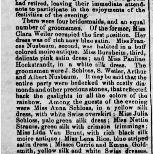 On November 10, 1897, Dora and Meyer’s oldest child Rosalie married Albert Livingstone (spelled that way for both Rosalie and Albert in this wedding article). They were described as “among the most prominent members of the Hebrew society in Central Illinois,” and Rosalie was described as the daughter of “Mayer Livingstone, a wealthy merchant of this city.”