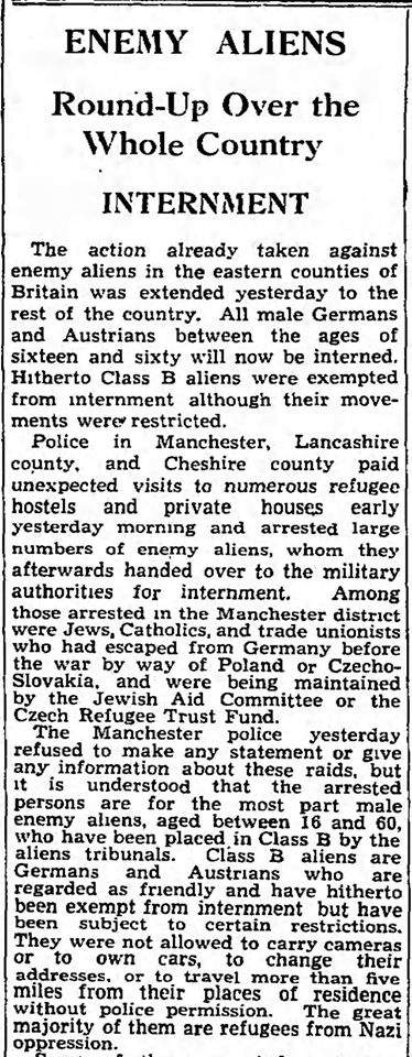 Robert Cramer, The National Archives; Kew, London, England; HO 396 WW2 Internees (Aliens) Index Cards 1939-1947; Reference Number: HO 396/14, Piece Number Description: 014: Internees at Liberty in UK 1939-1942: Cohn-Cz, Ancestry.com. UK, World War II Alien Internees, 1939-1945