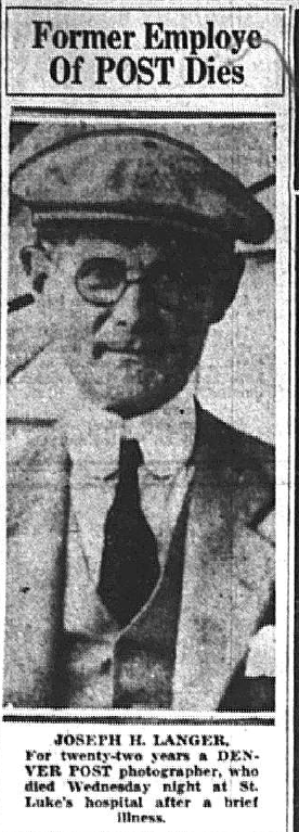 Sadly, their marriage did not last very long because Joe’s life was cut short on August 29, 1934, when he died from complications after a minor operation. He was 54 years old. The obituary published by his former employer, The Denver Post, filled in some of the remaining gaps in the story of Joseph Langer: