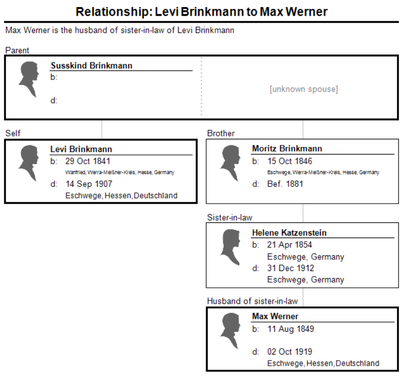 We returned once more to Eschwege for the final packing for just a few days and then back to Frankfurt where we stayed at the house of my aunt Hana Stern. [This must refer to Johanna Goldschmidt, wife of Abraham Stern, who was the brother of Julius’ mother Kiele Stern. Johanna was also, however, Kiele Stern’s first cousin, as Kiele’s mother Sarah Goldschmidt was the sister of Johanna’s father Selig Goldschmidt.] The house was occupied by her son-in-law who fled for his life in the middle of the night. [This must refer to Siegfried Oppenheimer, the husband of Alice Stern, as I wrote about here.] It was a terrible feeling as everyone around you took steps to save his naked life. Still living in the house upstairs lived the other son-in-law of my aunt, Albert Mainz [husband of Sitta Stern]. We had a last supper together, and the following morning we travelled to Stuttgart to ask at the American Consul for our visa. When we returned that same night, Albert Mainz and family also had fled. Our fright increased; we were very shaken and terrified. We decided to cross the Border that night. This move was long overdue.