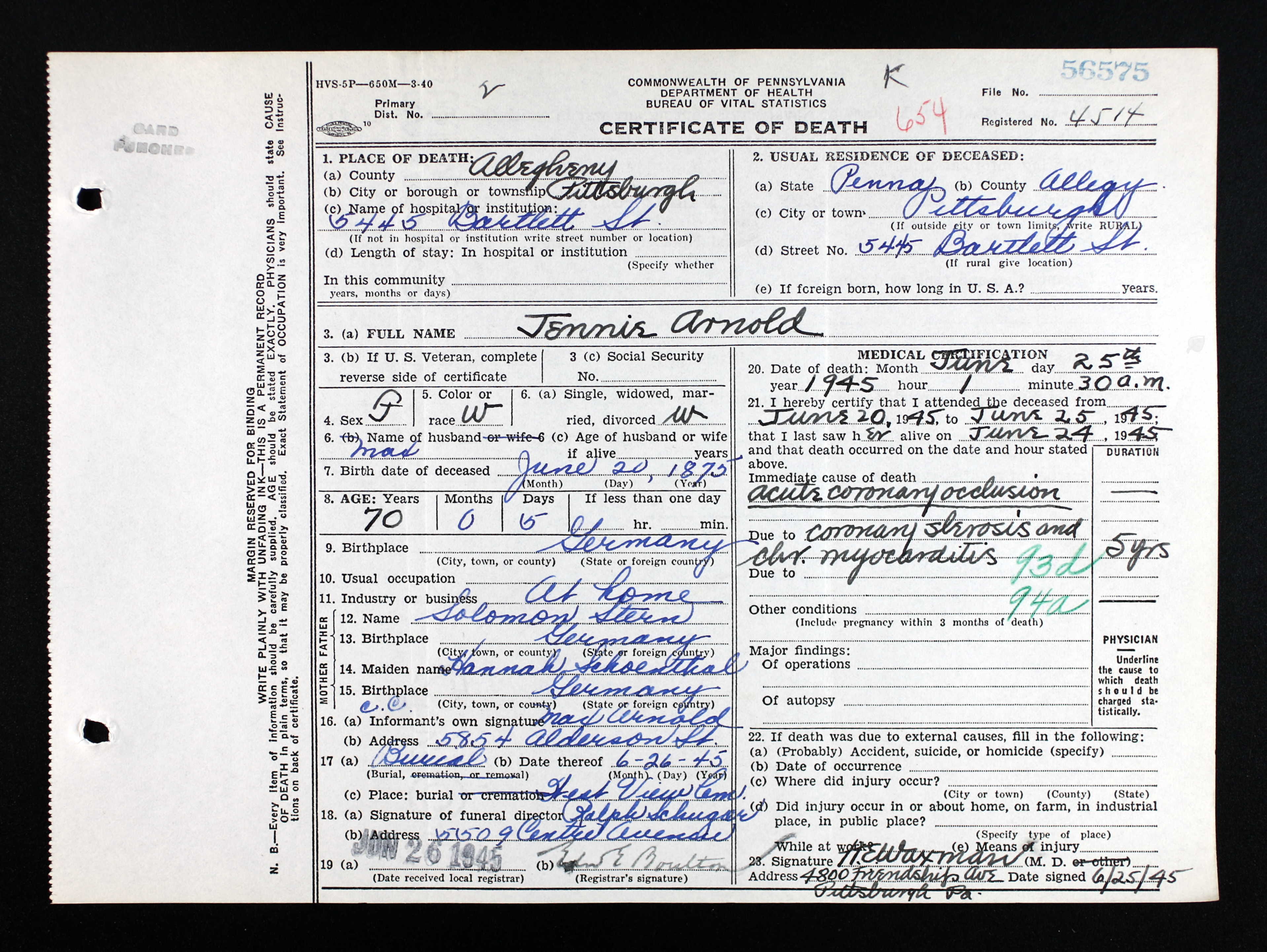 ![Ancestry.com. Pennsylvania, Death Certificates, 1906-1963 [database on-line]. Provo, UT, USA: Ancestry.com Operations, Inc., 2014. Original data: Pennsylvania (State). Death certificates, 1906–1963. Series 11.90](https://brotmanblog.com/wp-content/uploads/2015/10/jennie-stern-death-certificate-jpg.jpg?w=584&h=439)