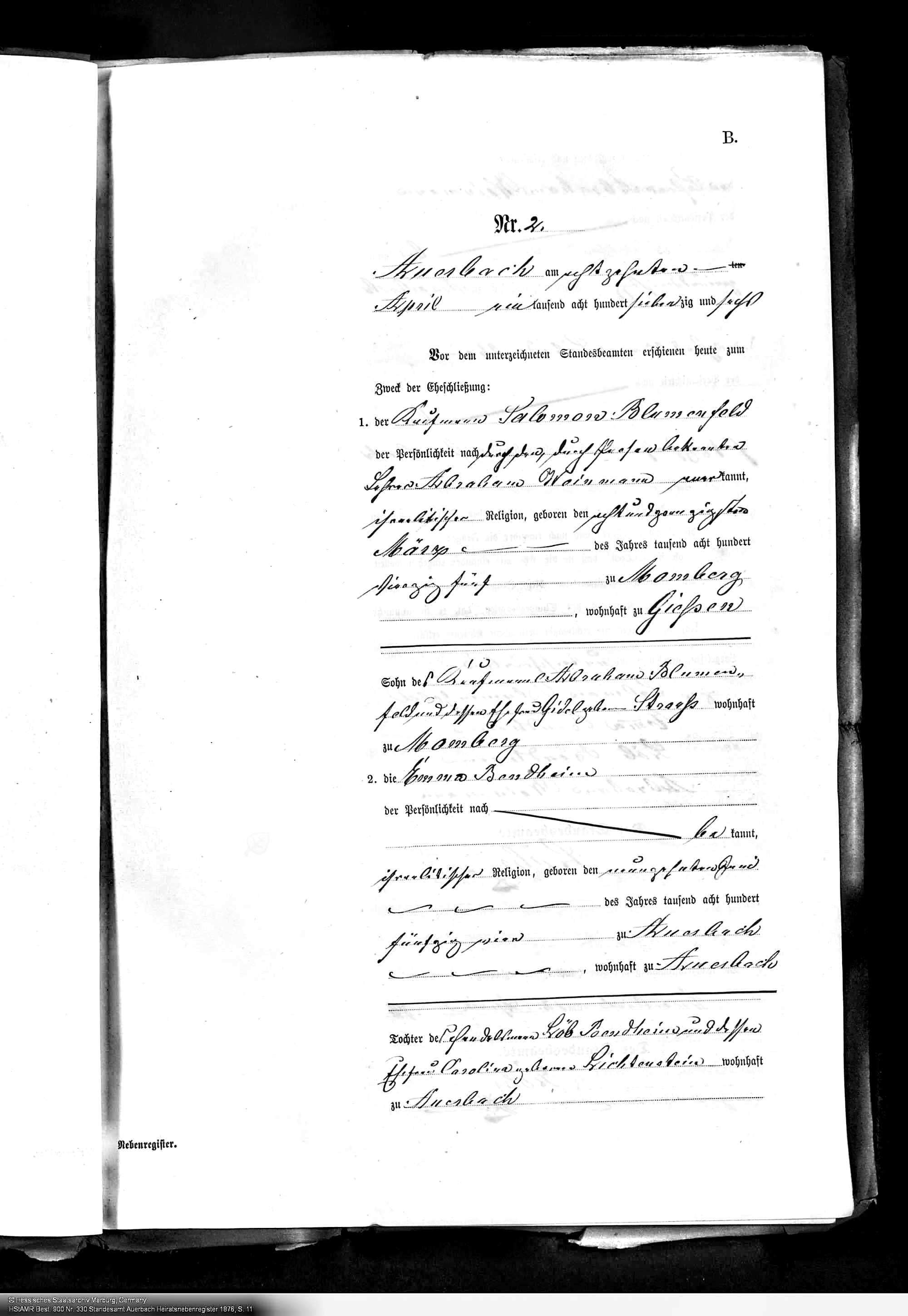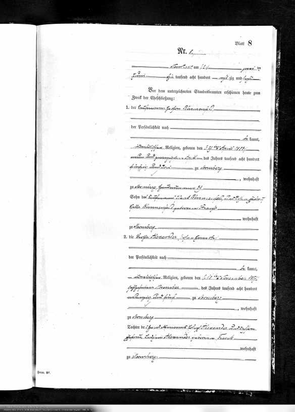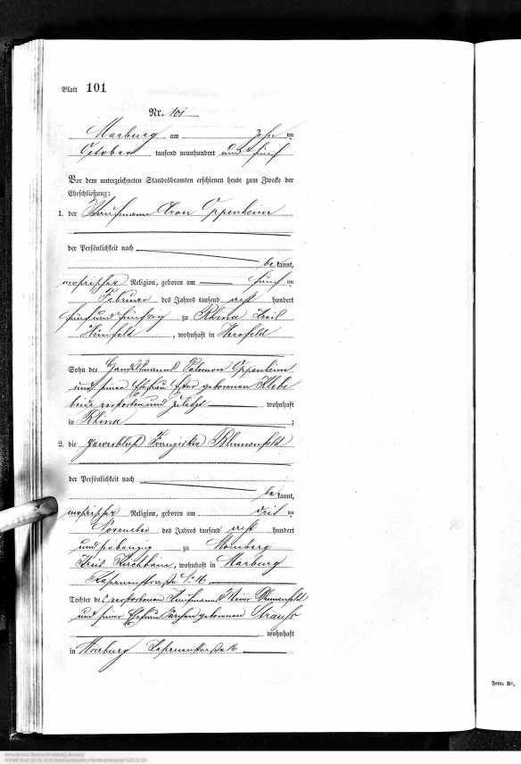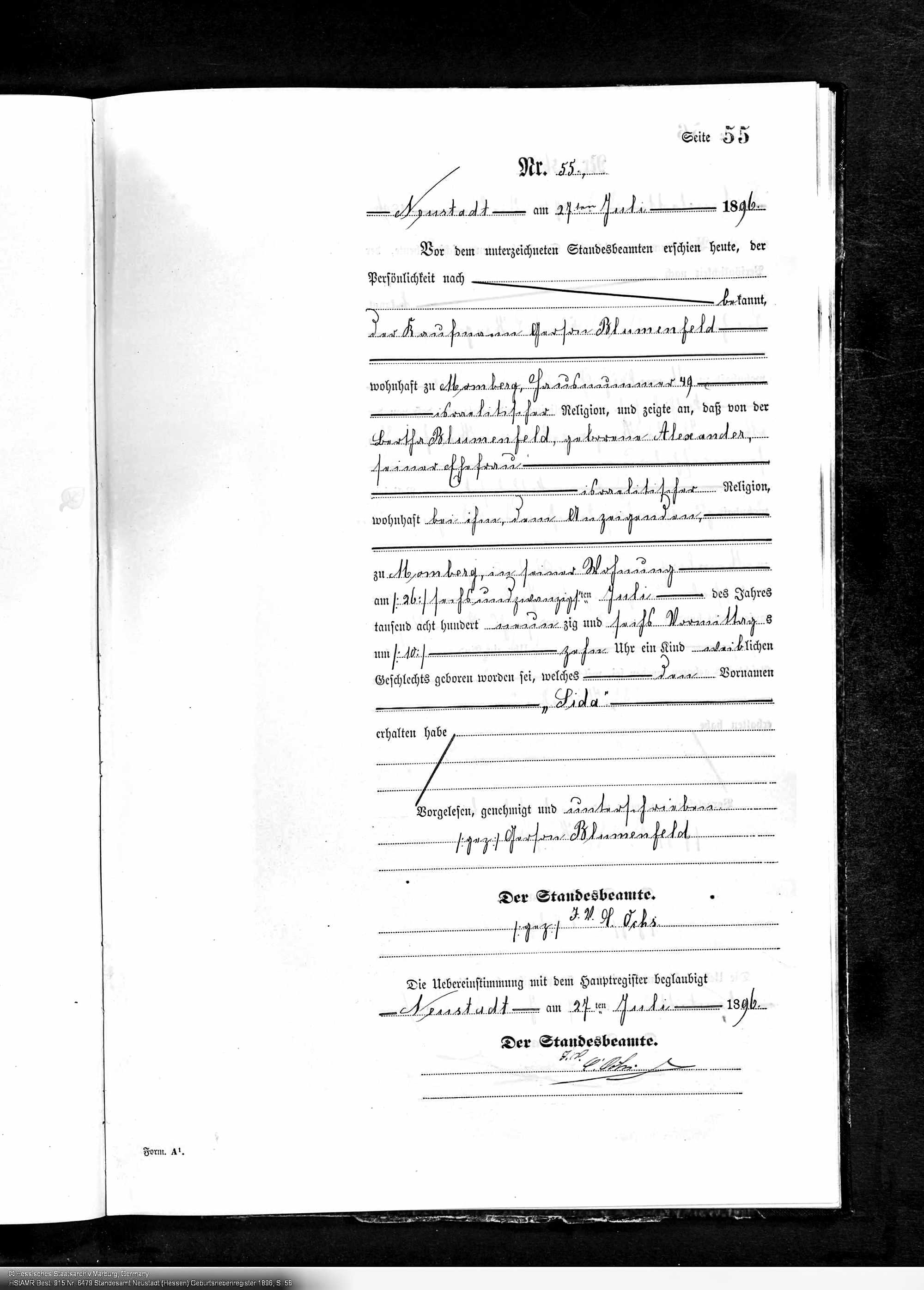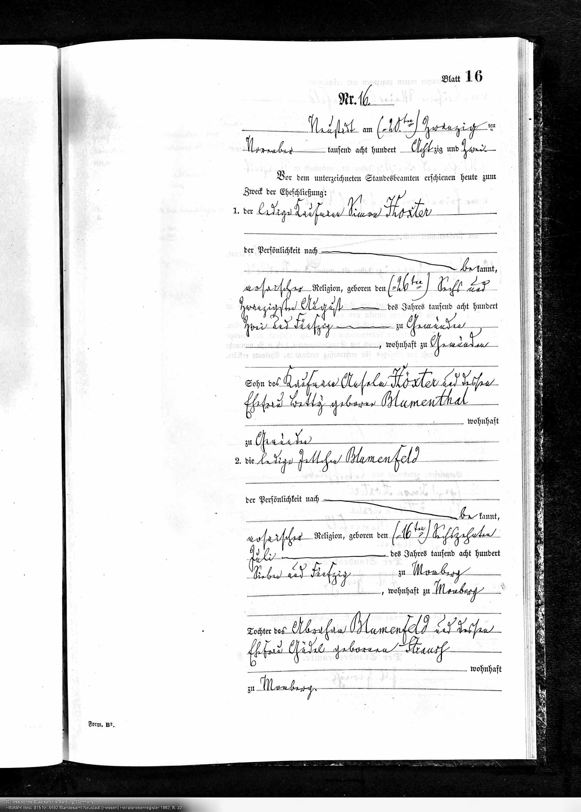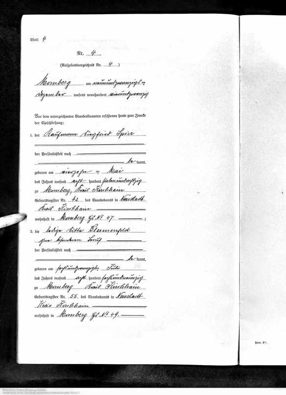 Friedrich Blumenfeld declaration of intention, The National Archives at Philadelphia; Philadelphia, PA; NAI Title: Declarations of Intention For Citizenship, 1/19/1842 – 10/29/1959; NAI Number: 4713410; Record Group Title: Records of District Courts of the United States, 1685-2009; Record Group Number: 21, (Roll 567) Declarations of Intention For Citizenship, 1842-1959 (No 444001-444900), Ancestry.com. New York, U.S., State and Federal Naturalization Records, 1794-1943