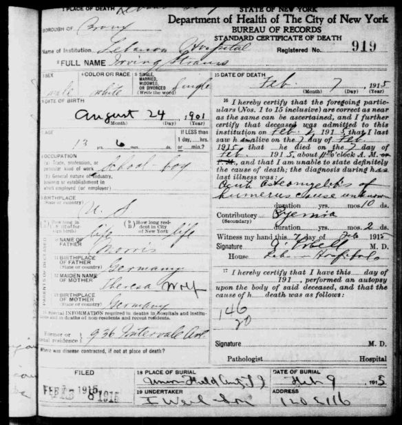 I cannot locate them on the 1940 census, but on October 16, 1939, they were all living together in the Bronx, according to Friedrich’s Declaration of Intention filed on that date. Friedrich was unemployed at that time.