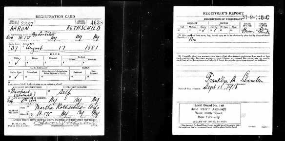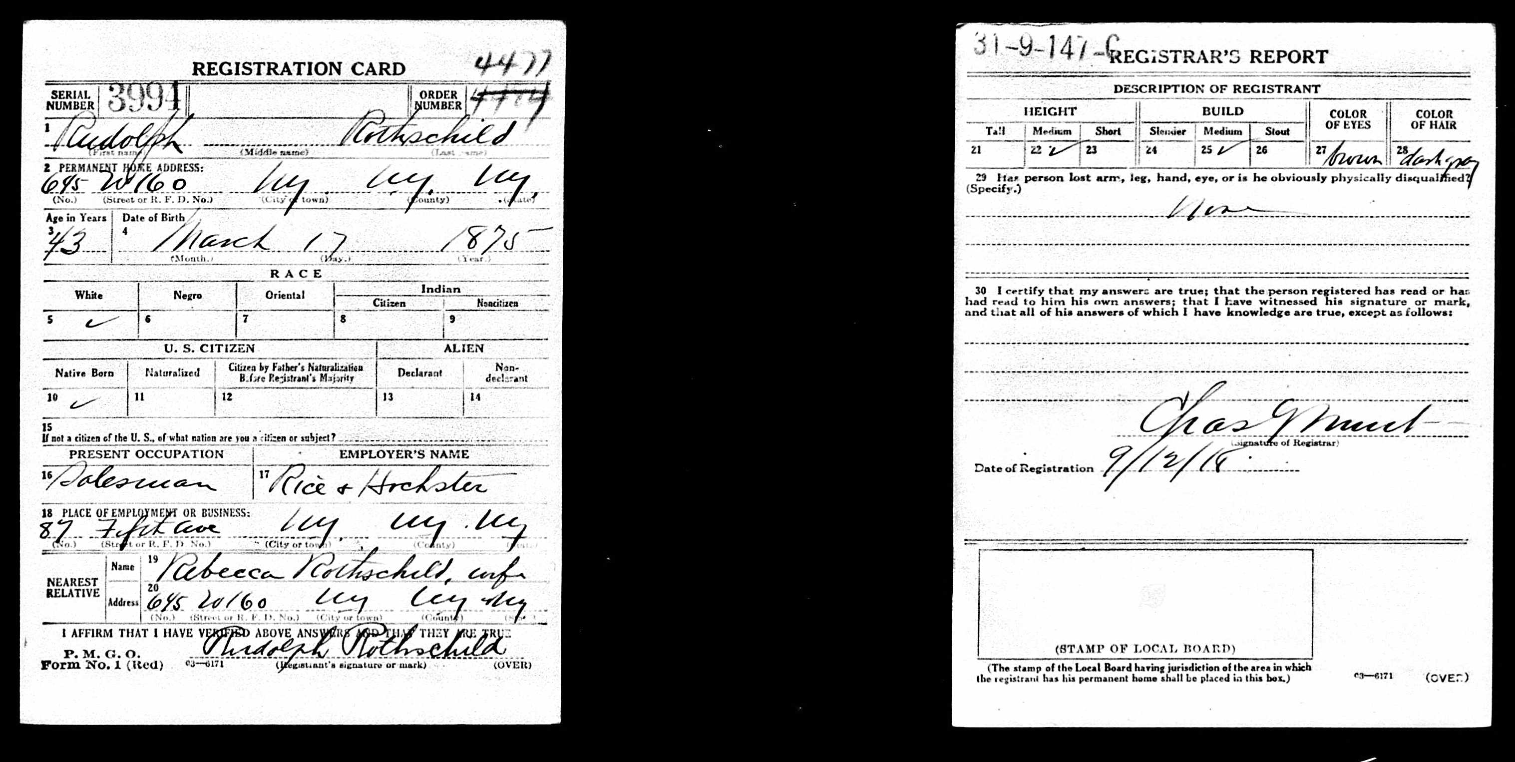 Arnold Blumenfeld World War I draft registration, Registration State: New York; Registration County: New York, Ancestry.com. U.S., World War I Draft Registration Cards, 1917-1918