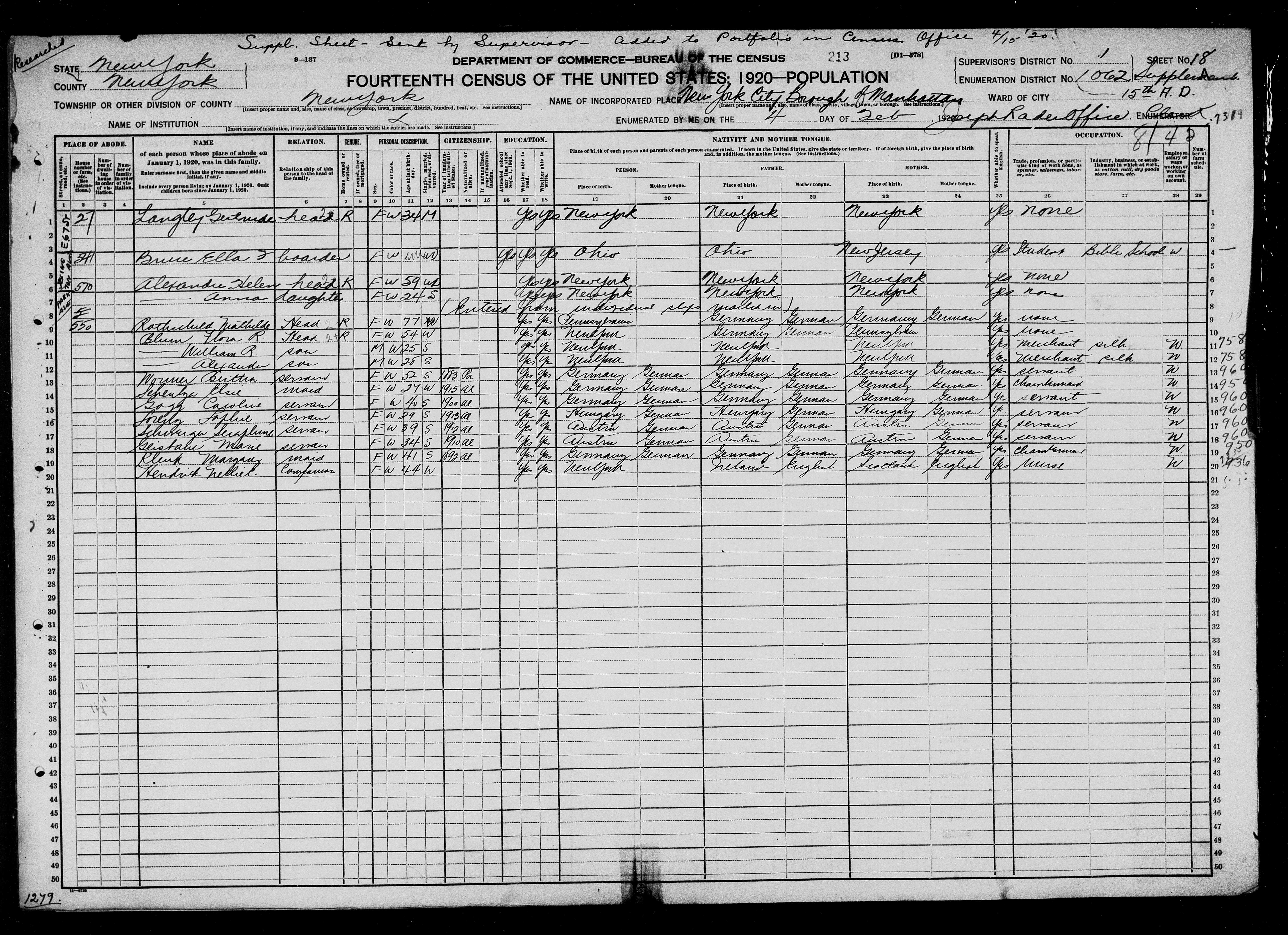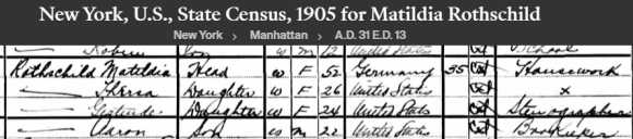- Rudolph Rothschild and family, 1925 NYS census, New York State Archives; Albany, New York; State Population Census Schedules, 1925; Election District: 01; Assembly District: 11; City: New York; County: New York; Page: 11, Ancestry.com. New York, U.S., State Census, 1925 ↩