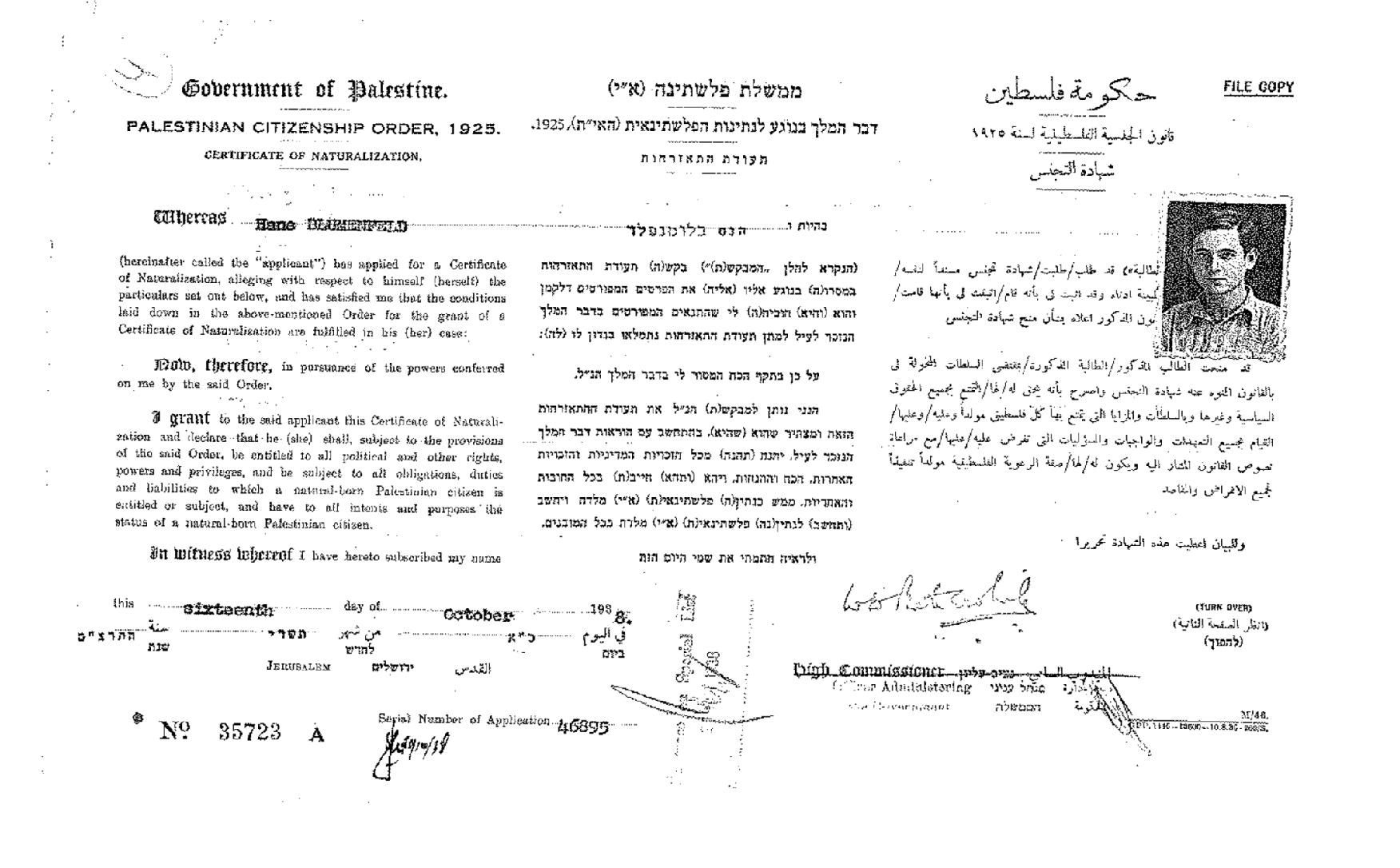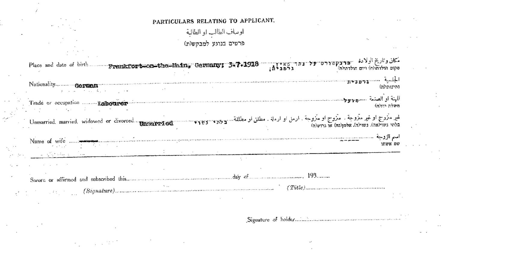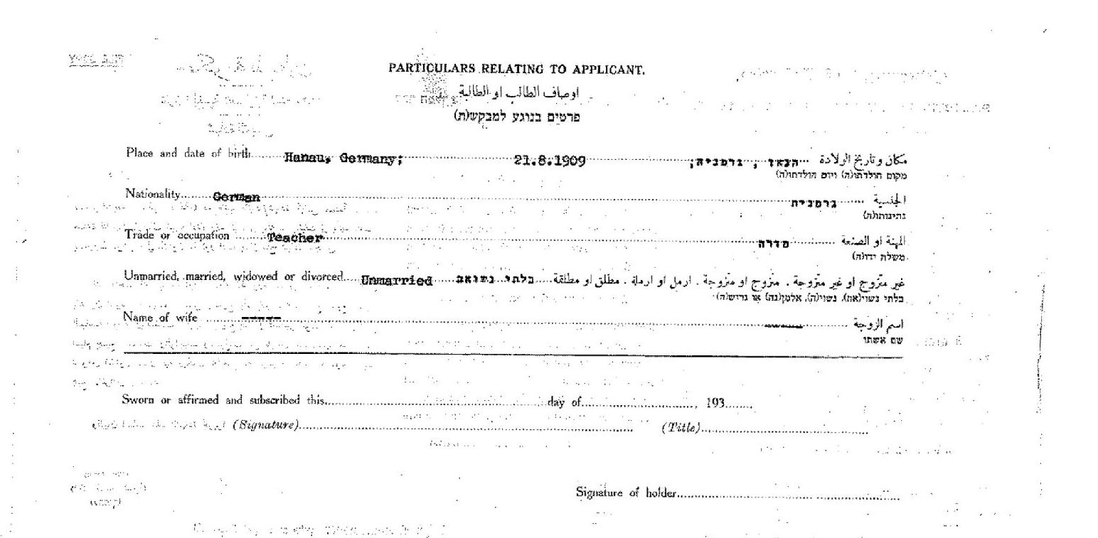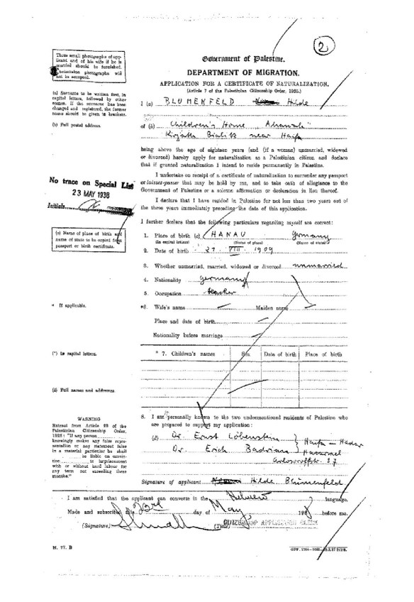 1. Emil and Lotte’s application for citizenship in Palestine in 1940 was found at the Israel State Archives website, temporarily found at https://search.archives.gov.il/, after a cyberattack on their main site.