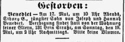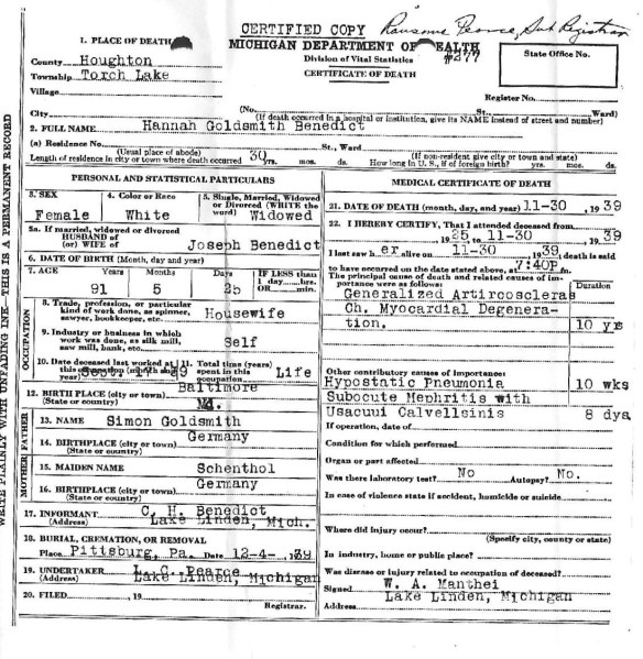 As readers of my latest novel Simon’s Secret know, Simon Goldschmidt was the inspiration for the title character of that book, Simon Handler. And his wife Fanny Schoenthal was the inspiration for Simon’s wife Fanny in the novel. Claire’s great-grandmother was Hannah Goldsmith Benedict, the inspiration for Hannah Handler Miller in Simon’s Secret. And Claire’s grandfather Jacob Benedict was the inspiration for Hannah’s oldest son Jonah in the novel.1